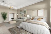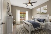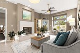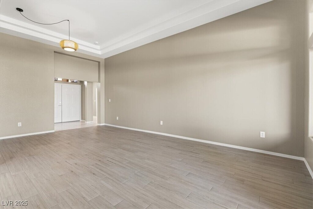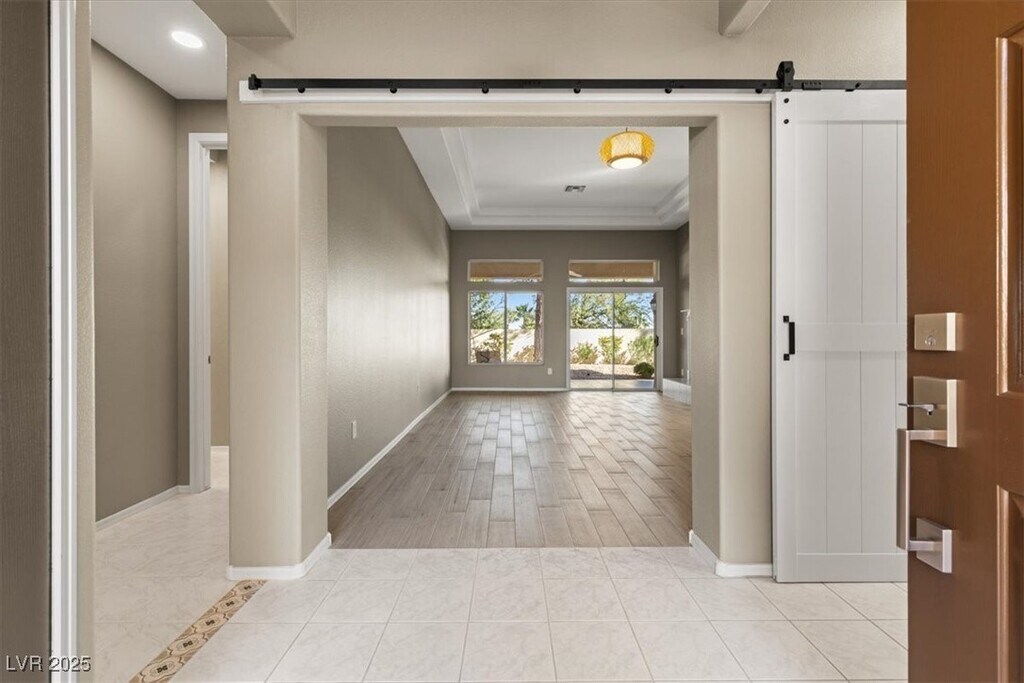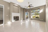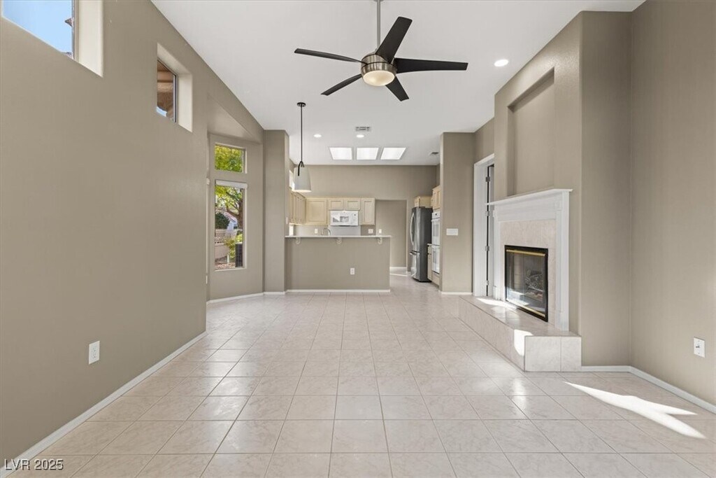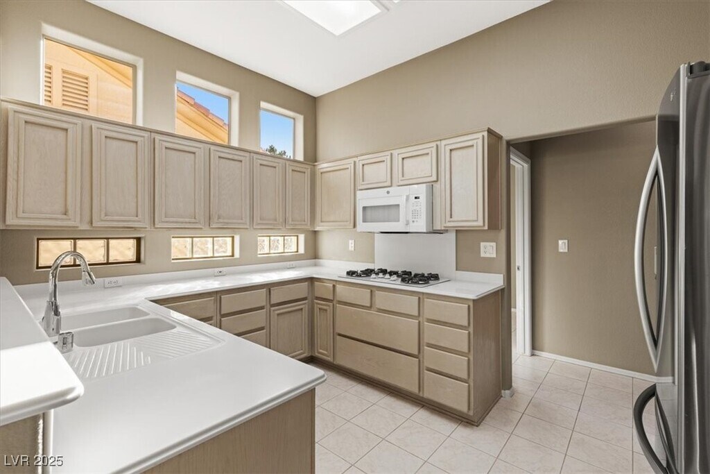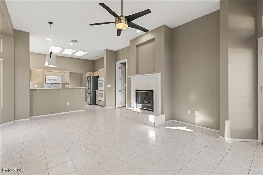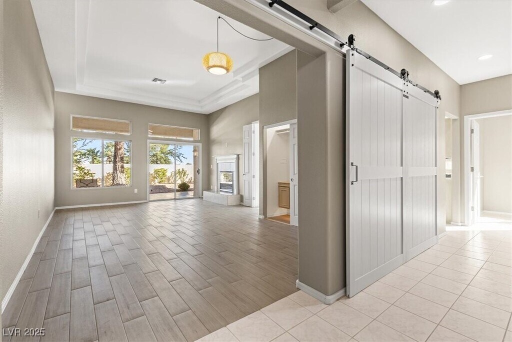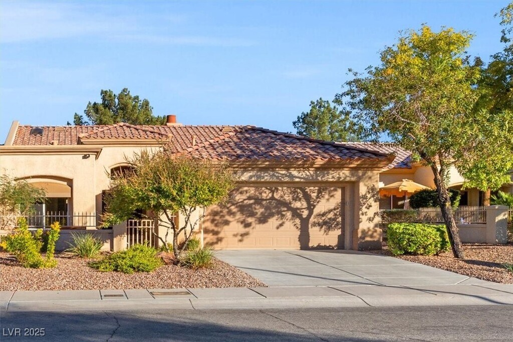 Experience exceptional & rare multigenerational living space in Sun City Summerlin with a private guest retreat—complete with direct kitchen access, its own closet, plus a modern barn door & French doors creating a truly private sanctuary. Perfect for a caretaker, visiting loved ones, or a flex suite tailored to your lifestyle. Natural sunlight pours across the open living spaces as you step inside, enhanced by soaring ceilings. The gourmet kitchen offers a breakfast bar, abundant cabinetry for storage, & a dining nook area that flows seamlessly into the living area with a dual-sided fireplace, creating the perfect ambiance for relaxed evenings. The primary suite features a bay window, dual vanities, & a spa-inspired walk-in shower. There's a flexible area off the kitchen that creates a space for a home office or pantry expansion. Outdoors, a backyard sanctuary with gentle city views to the east. The garage is fully refinished with epoxy floors & a dedicated golf cart parking. Enjoy!