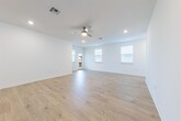 This 2023 open-concept home features 4 bedrooms, 2 bathrooms, and 1,700 sq. ft. of stylish living. Conveniently located near I-35 and Parmer Ln, you’ll have easy access to Apple, Dell, IBM, The Domain, shopping, and dining. Inside, enjoy a bright, open family and dining area that flows into the modern kitchen with quartz countertops, decorative backsplash, breakfast bar, and stainless steel appliances. The home comes move-in ready with a refrigerator, washer, and dryer included. The private primary suite offers a spacious walk-in closet and a spa-like shower, while three secondary bedrooms share a full bath up front. A large backyard with covered patio is perfect for outdoor living. Smart home features include a video doorbell, Home Hub, and Wi-Fi controls for lights, thermostats, locks, sprinklers, and garage door. Pets welcome (no restrictions)! Community amenities include a pool, basketball court, playscape, and amenity center.