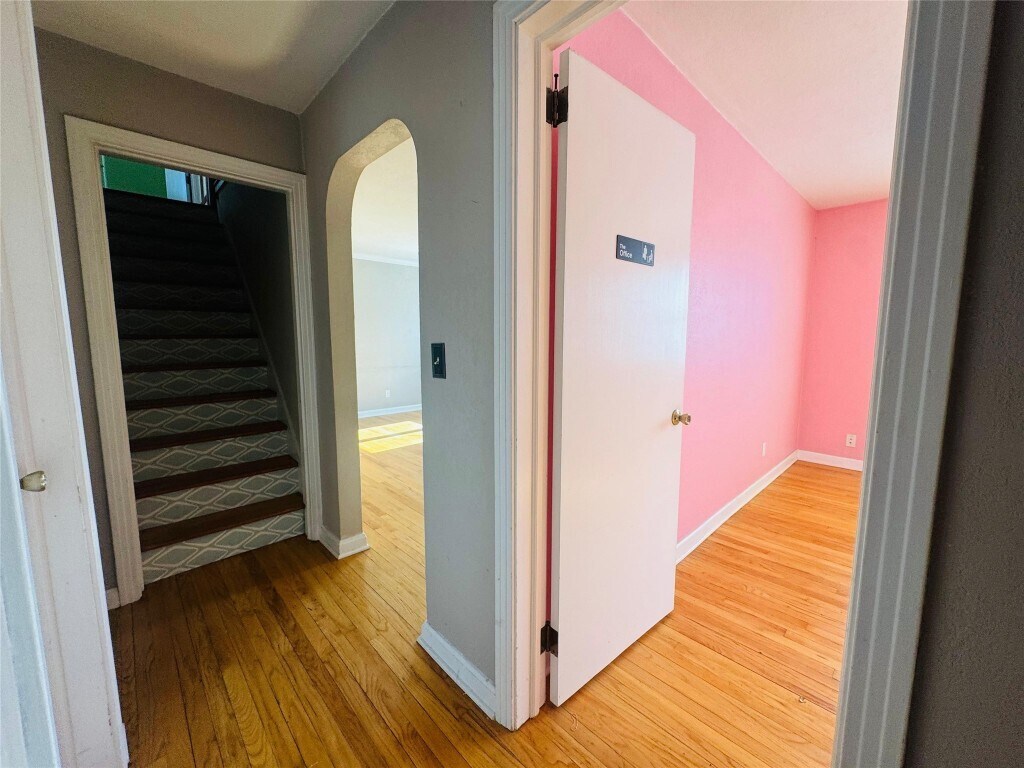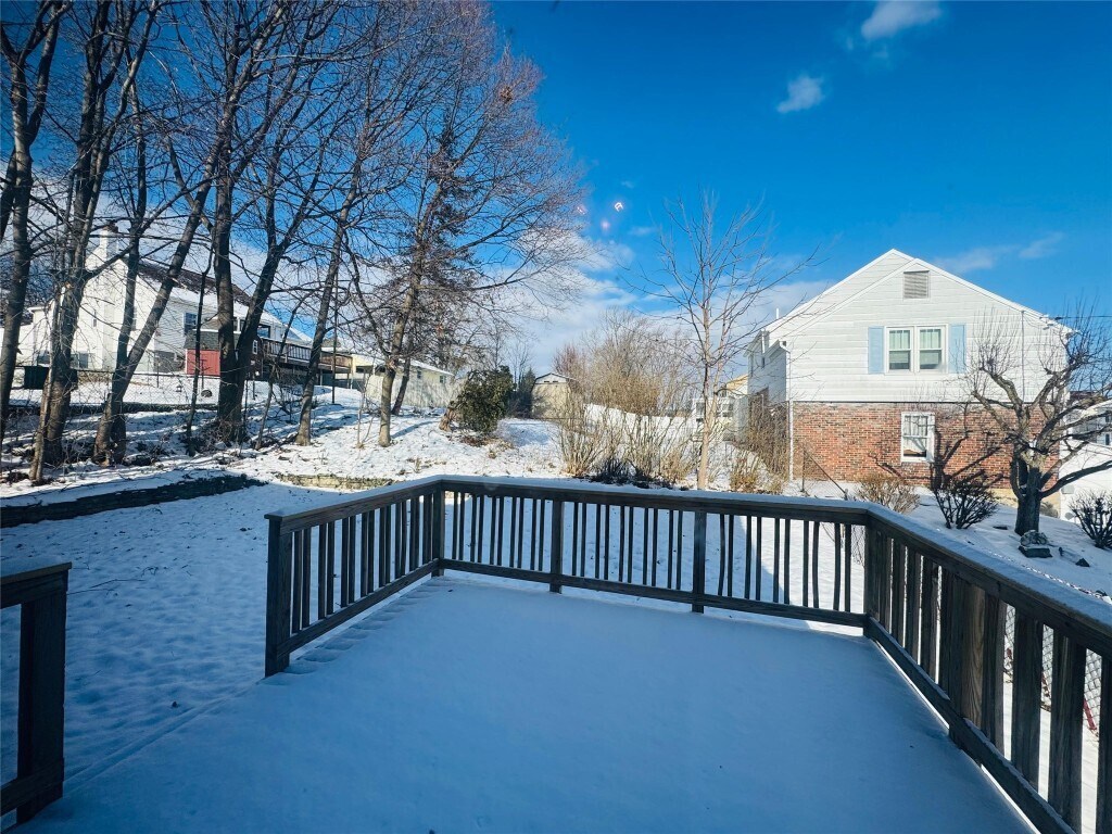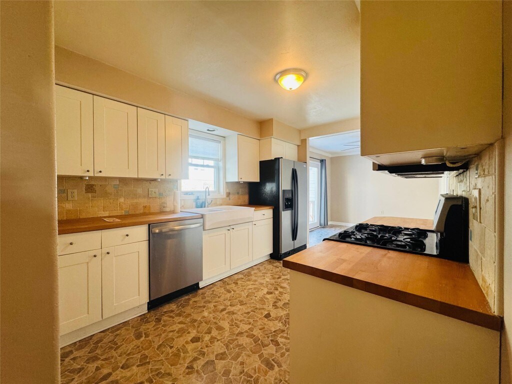 listing for the 4 Bedroom Split Level Home located in the Maine Endwell School District. The features I noted are: - Large living room with gas stone fireplace and a large Bay window. - Galley kitchen with white cabinets,butcher block counters,and stainless steel appliances. - Dining area off the kitchen with access to an open deck and the garage. - First floor laundry room,a first-floor bedroom that could be an office,and a full bath. - Second floor with three bedrooms and a full bath. - Crown molding throughout with oak hardwood floors. - Gas Forced Hot Air Heat with central A/C and an On-Demand Hot Water Heater. - Private backyard and one-car garage.