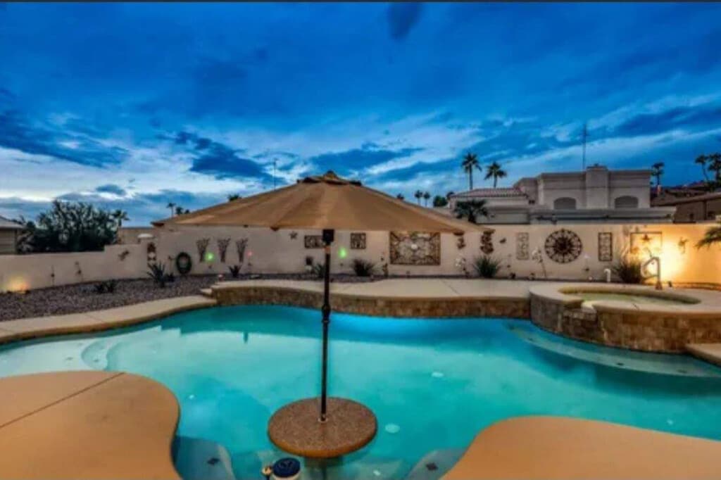 Discover the epitome of luxury living in Lake Havasu City! Nestled in a prime location, this stunning home offers unparalleled convenience to entertainment hotspots. Immerse yourself in leisure with a lavish pool and spa, perfect for unwinding after a long day. Boasting a meticulously designed space, every corner is crafted for seamless entertaining. Whether hosting gatherings or simply indulging in relaxation, this beautiful abode promises a lifestyle of comfort and sophistication. *Note: We are working on improving the sleeping situation and creating more sleeping space for you to enjoy with friends and family. Listing and photos will be updated soon! LIVING ROOM >Comfortable couch seating >Smart TV (login to own streaming apps) >Open concept living space -- large space, perfect for hosting >Pool table KITCHEN >Fully stocked kitchen >Barstools >Coffee maker >Dining table **CASITA ALSO HAS IT'S OWN FULLY STOCKED KITCHEN! BEDROOMS 1. King bed 2. Queen bed 3. King bed [CASITA] King bed [CASITA] Queen sofa bed [CASITA] 3 twin cots **COMING SOON: 3 Queen bunk beds in built-in bedroom attached to garage BATHROOMS 1. Ensuite to bedroom 1, walk in shower, double vanity 2. Shower/tub combination 3. (Casita) walk in shower 3.5 (garage) powder room EXTERIOR FRONT >Driveway parking EXTERIOR BACK >Pool >Hot tub >Beautiful sunsets >Privacy >Sun loungers >BBQ grill >Outdoor seating >Covered dining area with seating Guests will have access to the entire home minus the garage. We want your vacation rental experience to be memorable and convenient. Keeping a comfortable and clean property is what is most important to us. We will be available anytime via messenger to answer any questions or concerns. We take the approach of being hands off on the property unless needed - we want you to feel like you have the home all to yourself! Located on Jamaica Blvd .. one of the most common and prettiest streets in Havasu leading to the lake Located within minutes of entertainment, restaurants, and grocery stores. CAMERAS >Front yard >Back yard ...in place for safety and security reasons, do not tamper with. Motion detected and recorded OTHER THINGS TO NOTE >Must be 25 years old to book >No parties >No events >No smoking inside >Quiet time after 10pm (includes loud voices and music) >No unauthorized guests other than those on the reservation POOL HEATING >Pool heating is $150/day (must be paid for entire stay) >Please provide advanced notice >Spa heating included in booking amount ... increased price in winter months (November to March) -- if the stay exceeds 5 days, there is an additional $15/day charged for unlimited spa usage PETS >Sorry, we can not provide accommodations for your furry friends! We do have other listings that can, so please reach out if this is a must! LEFT BEHIND ITEMS >$10 service charge added to shipping cost BBQ GRILL >We try to keep our BBQ propane tanks full, but we aren't always sure. If you have to go fill the tank, please send us the receipt so we can reimburse you TPT# CREDIT CARD PROCESSING FEES Note: When making a reservation through our website or when using credit card payment there is a 4% credit card processing charge that is paid to Stripe (the credit card processing company). If AT ANY TIME there is a cancellation, the 4% charge is not refunded. DAMAGE PROTECTION The extra charge listed as “Waivo Insurance” on your reservation covers accidental damage in the home within a certain limit. If something happens or breaks during your stay please let us know immediately so we can file a claim. Note: This amount only covers a 10 day or less stay. If you are staying longer than 10 days we will request the difference in amount for coverage.