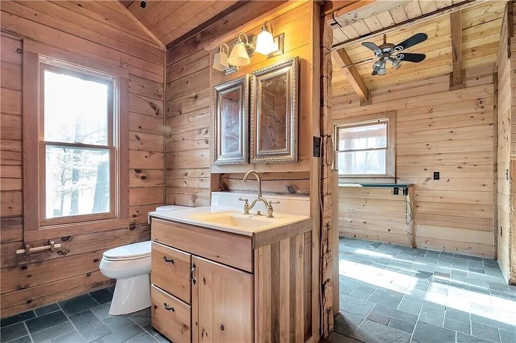 Main house available for rent. Attached In-law quarters are not included and is separately leased. For Rent – 2405 Mountain Road,Milton,GA 30004 Tucked away on 15.46 acres in the heart of North Fulton’s horse country,this 2 bed / 2 bath log cabin duplex that offers privacy,charm,and versatility. The home features slate floors,a chef’s kitchen with professional-grade appliances,and wrap-around decks with views in every direction.
