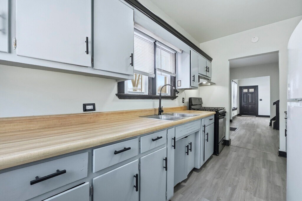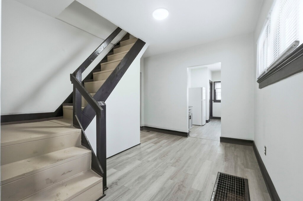 Property Id: 2484201 Great house- All vinyl plank floors, completely renovated. 2 bedrooms and 1 bath on the main floor, 2 beds and 1 bath on the second floor. Laundry on the main floor. Gas forced air, central air. Fridge, gas range provided- all new, stainless steel. Washer and dryer are not warranted- owner only provides hook ups- should washer and dryer malfunction- tenant to replace.