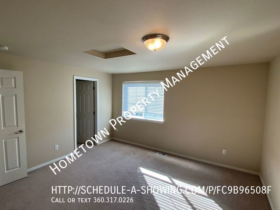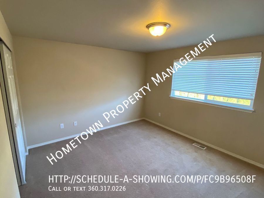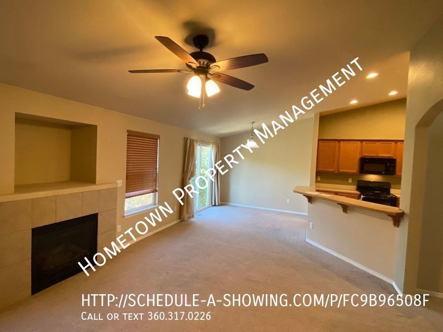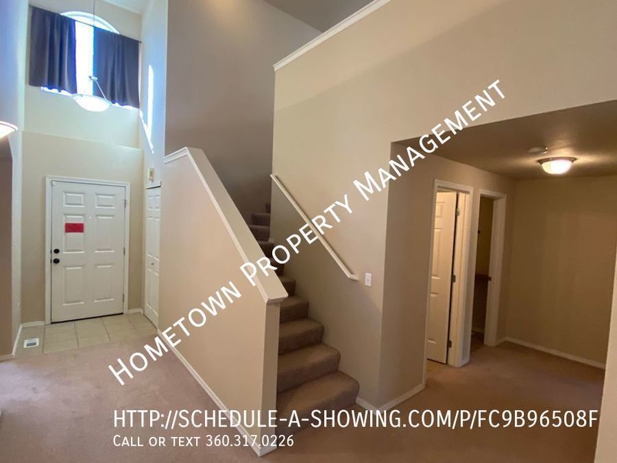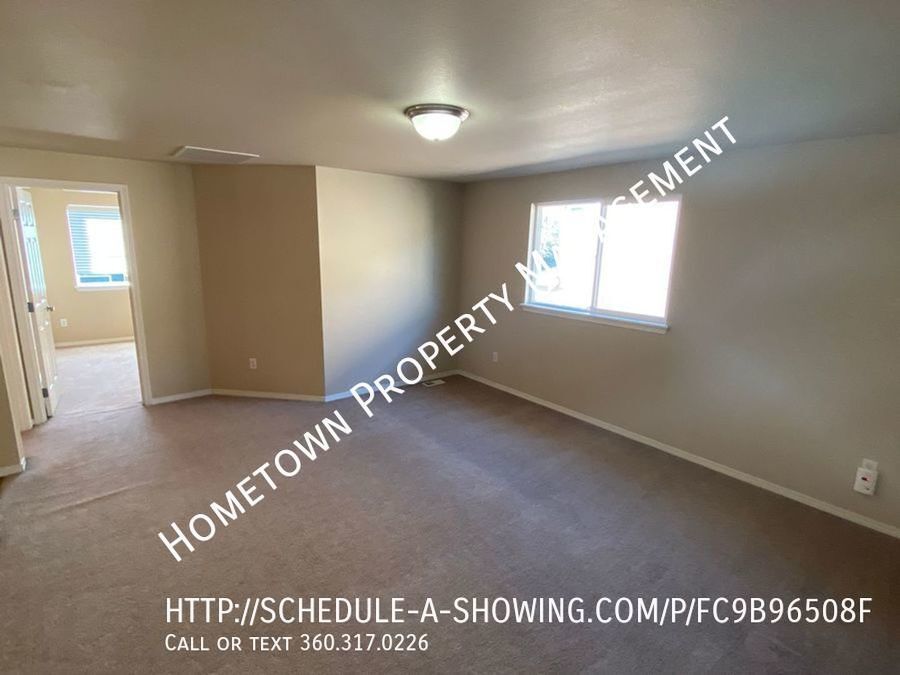 Bring everything! This home has room to spread out with formal and informal areas and a huge upper level bonus room! Kitchen with loads of counter and cabinets, pantry, microwave, refrigerator and glass cooktop electric range. Family room with cozy gas log fireplace, formal living room and dining room. Cathedral ceilings and lots of natural light. Primary bedroom suite on the main floor with separate bath with dual vanity and walk-in closet. Large second story loft separates two bedrooms and one full bathroom. Enjoy a cozy, covered front porch and fully fenced backyard. Located on a large corner lot. **NO SMOKING - NO ROOMMATES** Pets negotiable with monthly pet rent of $35 per pet. 12-month minimum lease. Great location, close to parks, shopping, and area amenities. 25 minute commute to JBLM. To schedule a no contact showing, call/text , or use the link below: Please schedule all evening showings by 4 PM, and all weekend showings by Friday at 4 PM. Failure to do so may result in your showing not being authorized. This home is marketed and managed by Hometown Property Management. For more information, including a virtual tour, please visit our website at Fenced Full Fireplace Gas No Roommates Parking 2 Car Garage Pet Rent $35/Month/Pet Stove/Oven Electric Washer/Dryer Hookups