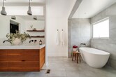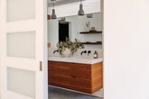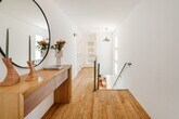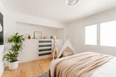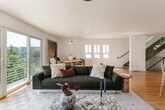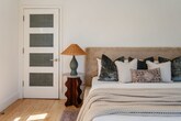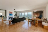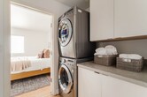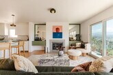 ***Open House: Sat, Oct 4 from 12-2pm*** A contemporary gem in the hills of Silver Lake, this 3 bedroom, 3 bathroom, 2,392 square foot retreat offers abundant living space, a meticulously landscaped yard, and sweeping city views. The entry level opens to a spacious guest suite featuring a cozy fireplace, a sleek wet bar with wine fridge, floating walnut shelving, and quartz countertops - an ideal refuge for visiting friends and family, or for use as a third bedroom. Windowed sliding doors allow for unobstructed views and airflow into the space. The main level also includes a full bathroom and offers direct access to the attached garage for convenience. Descend to the second floor and find the true heart of the home - an open concept main living space designed for both comfort and style. The kitchen makes a statement with its design and practicality, offering generous cabinetry, a sculptural curved island crowned with a raised glass bar and cement countertops, and stainless steel appliances. Flowing seamlessly from the kitchen, the living room centers around a refined fireplace, while the dining area is highlighted by a built-in bench with tailored upholstered cushions. Bamboo hardwood floors flow throughout the home, and a second terrace off the living area provides sweeping mountain views and extends the indoor space outdoors. This level also includes a conveniently located laundry area in the hallway, a full bathroom adorned with mosaic tiles, and a spacious bedroom complete with a built-in dresser. The lowest level is a devoted primary suite: a private retreat opening to its own patio. The ensuite bathroom evokes a spa-like feel with a double vanity featuring quartz countertops and custom-built floating walnut cabinets, a walk-in glass shower with a rainfall showerhead, and a freestanding soaking tub. Completing the suite is a spacious walk-in closet with built-in shelving for easy organization, with an additional bonus room adjacent. Just beyond the home lies a beautifully landscaped backyard, fully fenced for privacy and safety. Native greenery and trees, including an olive tree, lemon and lime trees, passion fruit vines, cactus, and more, enhance the setting. For added convenience, extra storage is neatly tucked beneath the house. Located near the Silver Lake Reservoir and neighborhood favorites like Burgers Never Say Die, Forage, the Silver Lake Dog Park, Botanica, and Constellation Coffee, experience the very best of Silver Lake living with space to create, entertain, and unwind. Available October 15th, contact for showing