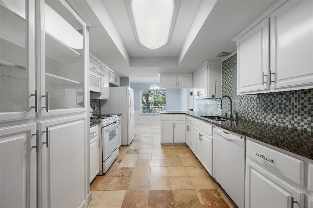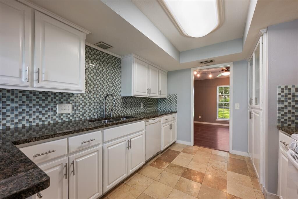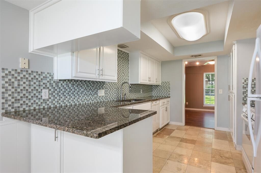 Unique one story home . Rare find in a great location with large fenced back yard - quiet and quaint. Open floor plan, high ceilings with private backyard. Family room with fireplace, formal dining or office. Kitchen with granite, glass tile backsplash and undermounted sink. Refrigerator and washer and dryer included. Massive mud/laundry room. Large private backyard with mature trees, covered back patio. 16 x 20 backyard shed. Easy access to IH35 and Mopac. Minutes from Domain, Arboretum and 20 minutes from downtown. Pet friendly.