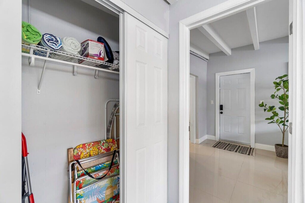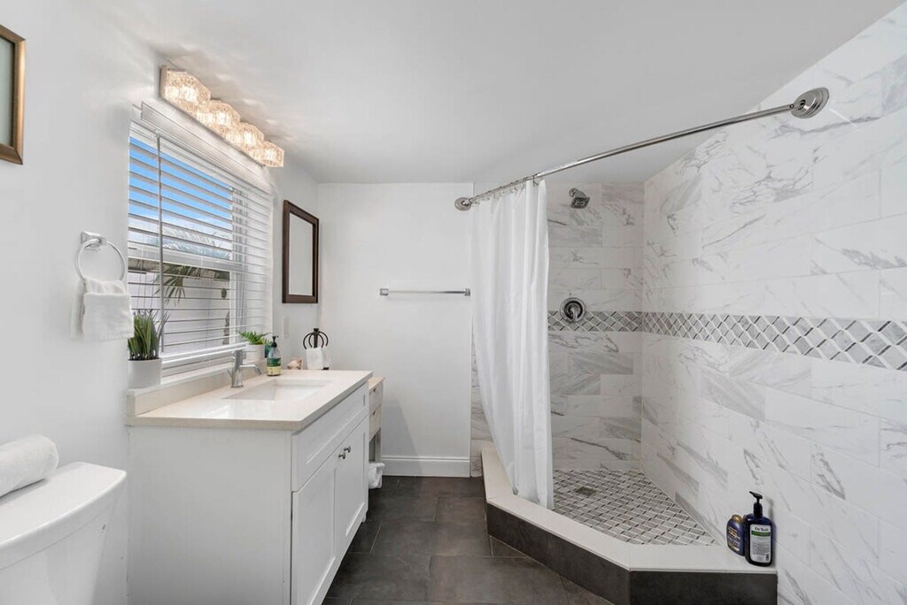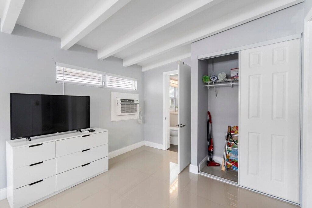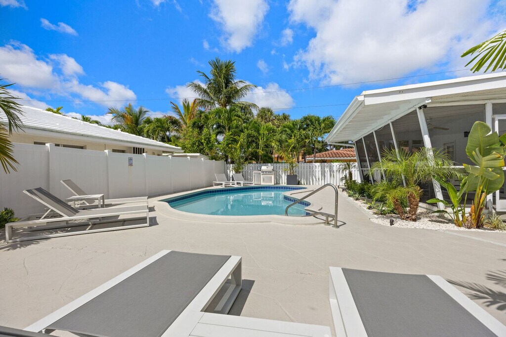 Welcome to the Coconut room at Palm Paradise Inn, the perfect spot for a quick getaway in Sunny South Florida. This one-bedroom apartment is just a 5-minute walk from Fort Lauderdale Beach and offers a fully stocked kitchen, a king-size bed in the bedroom, and two single beds in the living room, comfortably sleeping four guests. Enjoy the shared pool and large backyard outdoor space, complete with lounge chairs, outdoor seating, and a fire pit. The Coconut unit features a full kitchen and a cozy living room, providing a comfortable space for relaxation. The shared outdoor area includes multiple seating and lounge areas, as well as a grill for the ultimate cookout experience. Enjoy floating in the pool or take a short walk to the beach with provided beach chairs. Pets are welcome with a fee of $125 per stay. We kindly ask that pets are kept out of the pool and off the furniture, with crate-trained pets preferred. Free parking is available for guests, and a washer and dryer are located behind Unit 2 for your convenience. Located in the vibrant North Fort Lauderdale Beach area, this apartment is just a 5-minute drive from the famous Fort Lauderdale Beach and a 10-minute drive to Lauderdale by the Sea. The neighborhood is walkable and bikeable, with nearby attractions like Cafe Martorano and Coral Ridge Mall, which is a 7-minute drive away. While a car is recommended for exploring further, local amenities are easily accessible on foot or by bike. This property consists of three units, with the backyard, grill, and pool being shared spaces. The apartment is private and exclusive to you. No parties, no smoking, and no unregistered guests are allowed on the property. Exterior cameras are installed for safety, and the pool temperature is subject to ambient conditions. The primary guest must be at least 25 years old to book this property.