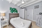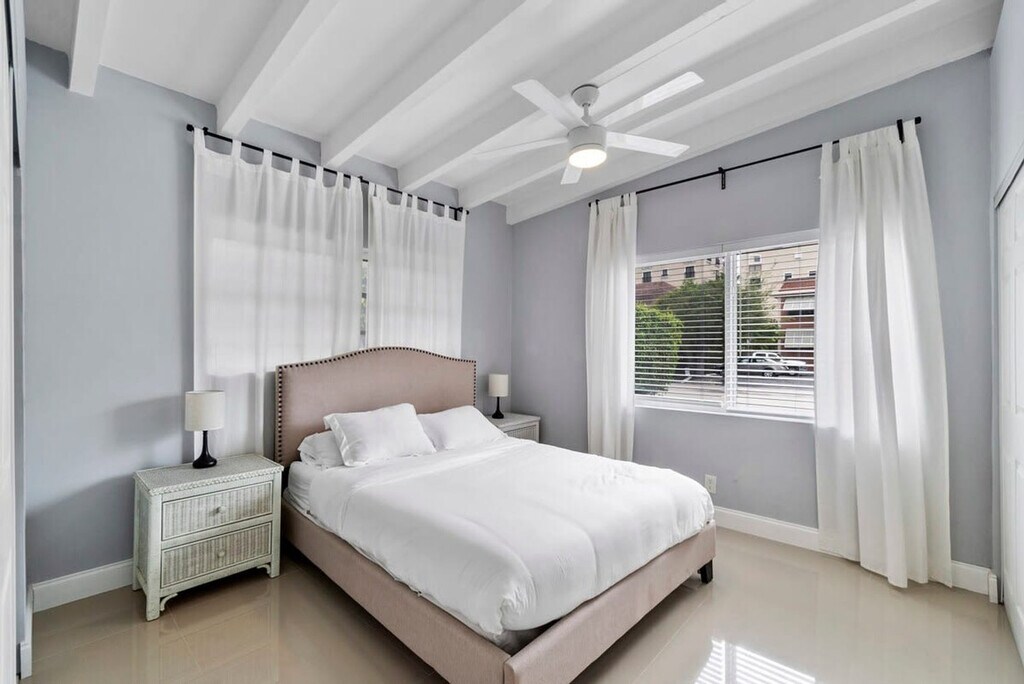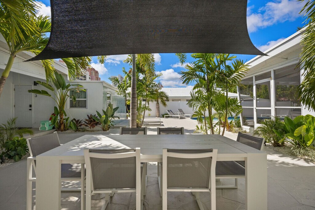 Welcome to the Coconut room at Palm Paradise Inn, the perfect spot for a quick getaway in Sunny South Florida. This one-bedroom apartment is just a 5-minute walk from Fort Lauderdale Beach and offers a fully stocked kitchen, a king-size bed in the bedroom, and two single beds in the living room, comfortably sleeping four guests. Enjoy the shared pool and large backyard outdoor space, complete with lounge chairs, outdoor seating, and a fire pit. The Coconut unit features a full kitchen and a cozy living room, providing a comfortable space for relaxation. The shared outdoor area includes multiple seating and lounge areas, as well as a grill for the ultimate cookout experience. Enjoy floating in the pool or take a short walk to the beach with provided beach chairs. Pets are welcome with a fee of $125 per stay. We kindly ask that pets are kept out of the pool and off the furniture, with crate-trained pets preferred. Free parking is available for guests, and a washer and dryer are located behind Unit 2 for your convenience. Located in the vibrant North Fort Lauderdale Beach area, this apartment is just a 5-minute drive from the famous Fort Lauderdale Beach and a 10-minute drive to Lauderdale by the Sea. The neighborhood is walkable and bikeable, with nearby attractions like Cafe Martorano and Coral Ridge Mall, which is a 7-minute drive away. While a car is recommended for exploring further, local amenities are easily accessible on foot or by bike. This property consists of three units, with the backyard, grill, and pool being shared spaces. The apartment is private and exclusive to you. No parties, no smoking, and no unregistered guests are allowed on the property. Exterior cameras are installed for safety, and the pool temperature is subject to ambient conditions. The primary guest must be at least 25 years old to book this property. [SI]