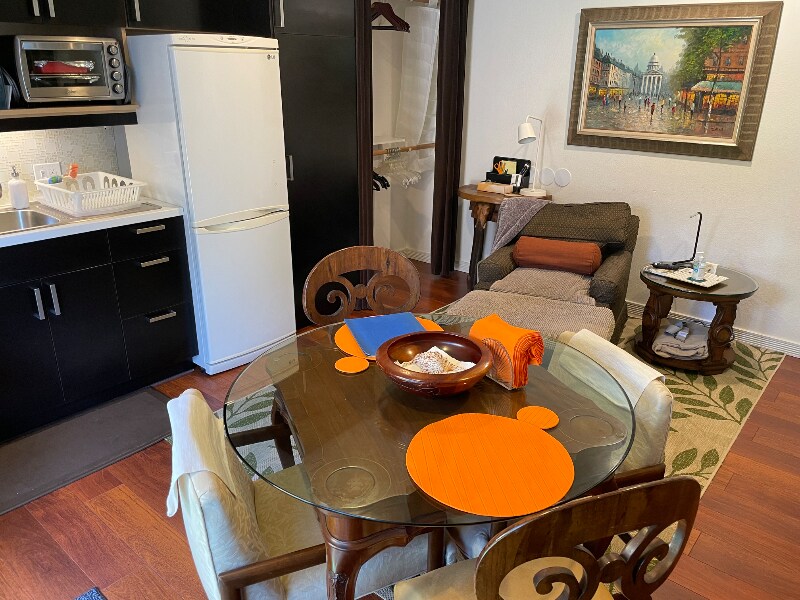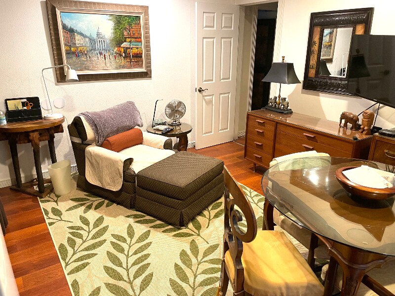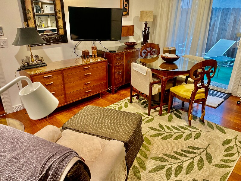 Property Id: 1831366 $2500 /solo guest. Call: interview & application. Elegantly designed guest suite for a NON SMOKING PERSON. There are no shared spaces. Shared laundry facilities are in the garage. Suite is attached to the main house. Has a private entrance. Rent includes utilities, internet, streaming services, furniture, linens, towels, laundry, housekeeping. Non-refundable exit Cleaning/ Restoration Fee of $195. Small Dog welcome; non refundable Pet Fee $100. No pet rent. Fine furnishings, luxurious queen bed, the 100% cotton linens, and a comfortable living and dining room will greet you when you stay in this upscale, ultra clean, and turnkey guest suite for one. One car on the driveway with security camera. No commercial vehicles please. You will also enjoy a Roku televisions in the bedroom and living room, with free access to cable TV channels, Netflix, Amazon Prime, Apple +, and others. There is a dining table, and a kitchenette in which you can cook a meal. Included small appliances are refrigerator, air fryer, microwave, portable induction stove top, toaster, oven, coffee maker. Rent is $2500 for six months minimum. If renting less than six months rent is $150 more per month. Long-term guest is welcome. Call for application instructions: $35 for 30 day access. If you want to reserve this unit, $1500 is required as a nonrefundable reservation deposit which converts to security deposit upon move in. Need verifiable income or saving; 2.5 times the rent, credit report 700+. You will need to obtain a rental policy with 300,000 liability minimum with the owner listed as the interested party. Call for phone interview and appointment. Needed: A copy of your driver's license, signed lease, and a current picture, a completed guest information sheet including emergency contacts. Please note that I cannot accommodate drug use, couples, smokers or cats.