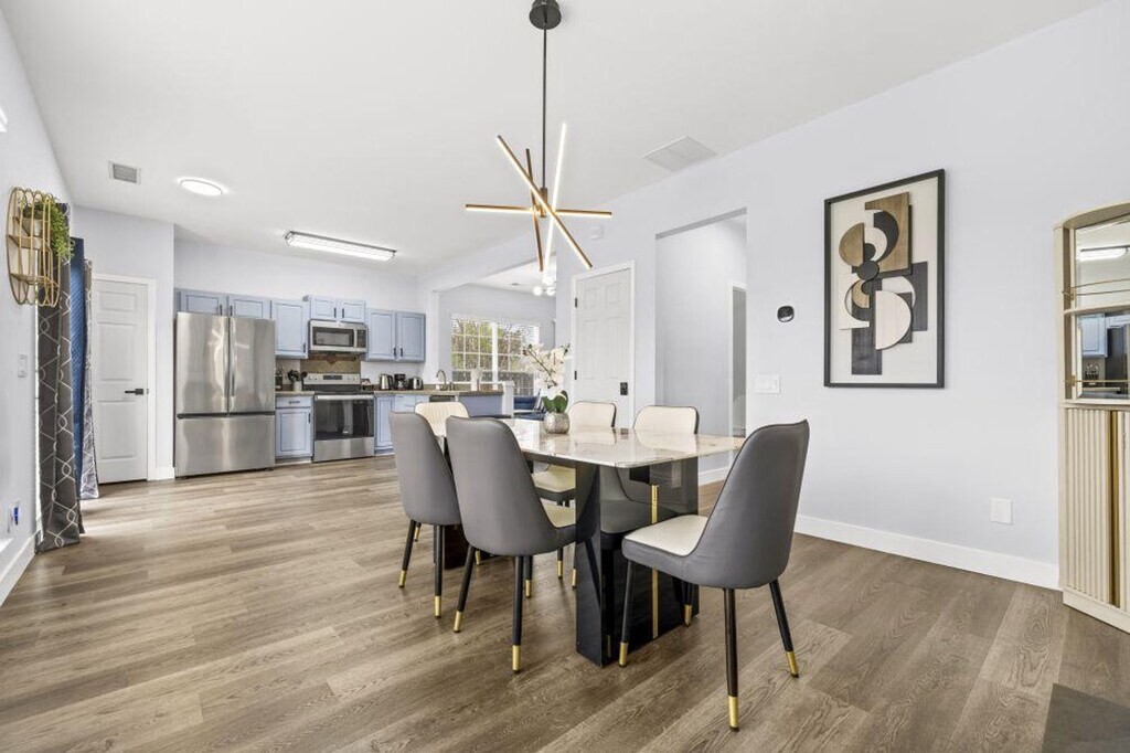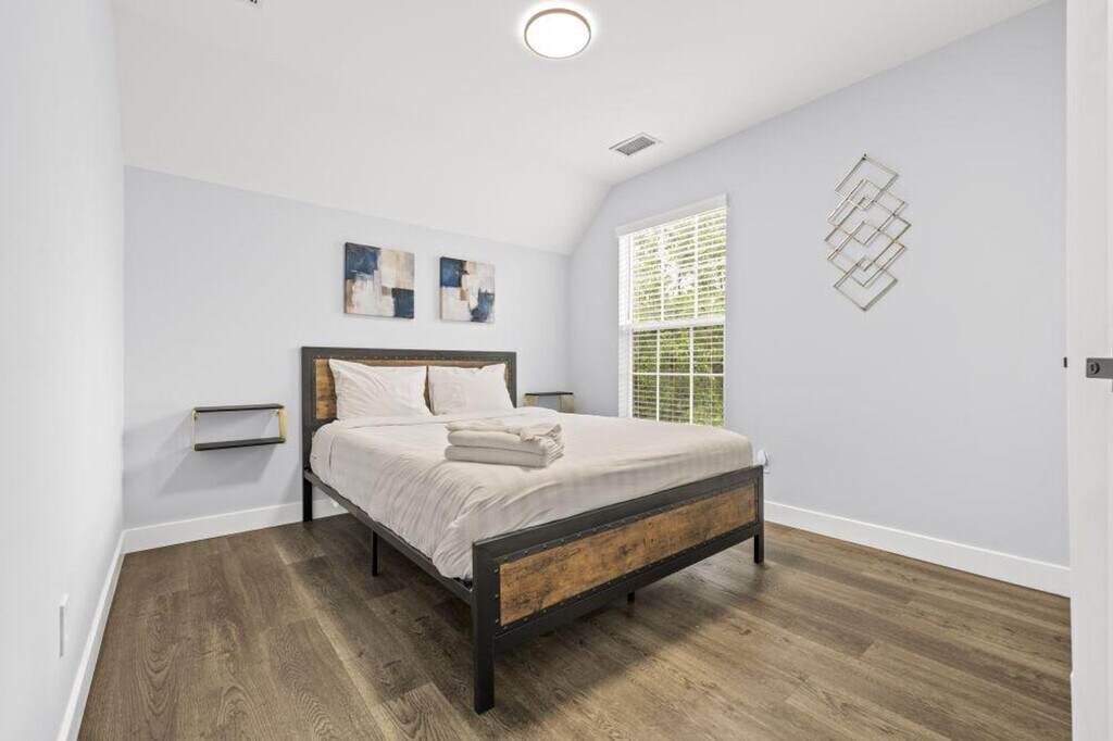 Welcome to this inviting two-level home nestled in a peaceful neighborhood in Charlotte, NC. Designed with comfort and family living in mind, this property offers a warm and welcoming atmosphere. The spacious living room, featuring a smart TV, is perfect for cozy movie nights or lively gatherings. The adjoining dining area boasts a delightful fireplace, creating the ideal ambiance for family meals and special occasions. The well-equipped kitchen is a chef's delight, complete with modern appliances and plenty of counter space to inspire culinary creations. Step outside to enjoy the courtyard, a serene space where kids can play, or you can relax with your morning coffee. This home is perfect for families seeking a blend of modern comfort and a cozy retreat. This home features air conditioning, an equipped kitchen, a fireplace, internet and Wi-Fi, a smart TV, and a courtyard, ensuring a comfortable stay for all guests. Parking garage is available for your convenience. Explore local attractions such as UNC Charlotte, Lowe’s Motor Speedway, PNC Pavilion, Discovery Place Science in Uptown, Freedom Park, Romare Bearden Park, NASCAR Hall of Fame, Daniel Stowe Botanical Garden, Charlotte Nature Museum, Reedy Creek Nature Center and Preserve, Billy Graham Library, and Carowinds Amusement Park. A state identification card or driver's license copy will be requested upon booking. For security purposes, surveillance cameras are installed at the front and back of the house. Smoking is not allowed in the unit or on the balcony. Any violation of the smoking policy will result in a $250 fine, plus any cleaning costs. No pets allowed, with a $200 fine for violations. House parties and illegal substances are strictly prohibited and grounds for immediate eviction. You must be at least 21 years old to book this property. Leaving the unit later than the check-out time will incur a late check-out penalty starting from $500. No items should be dropped or thrown from the balcony. If you exceed the maximum allowed number of occupants, a penalty of $100 will be applied.