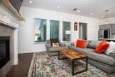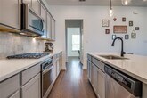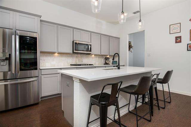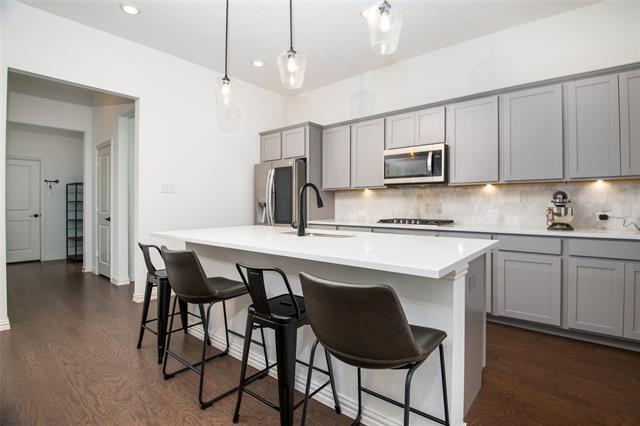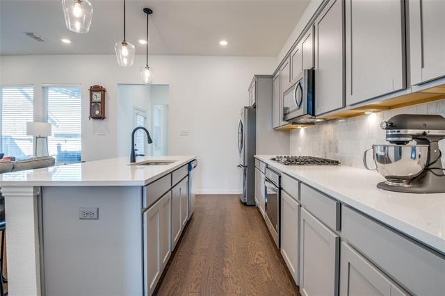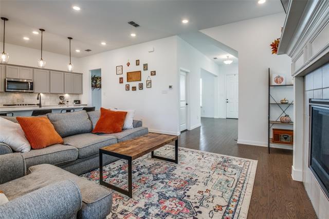 Welcome to 2408 Elm Place, a beautifully designed, nearly new home in the highly sought-after Pecan Square community of Northlake. The heart of this bright and spacious open-concept home features a chef-inspired kitchen with modern finishes, a gas stove, and large island with seating for the whole family. You'll enjoy the easy flow into the formal dining and living areas, which boast high-ceilings, hardwood floors, a gas fireplace, and lots of natural light. Retire to your master retreat after a long day to unwind with plush carpeting, large windows, and an en-suite bath with modern elegance and a spa-like feel. Featuring a functional layout, large bedrooms, walk-in closets, a spacious laundry room, and a study or office area mean you have the space and flexibility to meet all your family's needs. The exterior space doesn't leave anything out. A scenic front porch, and a low-maintenance backyard with a decorative lighting, big lawn, and large covered patio provide the space you need to enjoy relaxing, playing, or entertaining. The Pecan Acres Community boasts Award-winning Northwest ISD schools and amenities like a pool, fitness center, game room, meeting space, walking trails, and community-planned activities. They even include wifi and maintain your yard for you! Last, but not least, we love our furry friends. Pets are welcome!