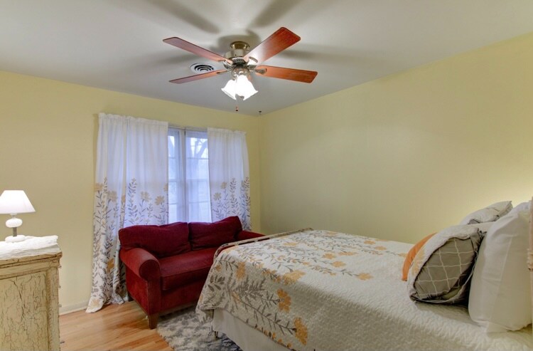 Property Id: 717155 Sweet 50s style home is adorable with many amazing original details !! This home is in a quiet neighborhood with large front and back yards. With a covered back porch, chairs & loungers provided to relax under one of the many huge pecan trees. A large pic-nic table and outside wooden cooler provided as well and a ping-pong table can be included upon request. This is a peaceful place to enjoy your morning coffee or cocktail . Local attractions such as Magnolia is 5.6 miles, Baylor University is 8.7 miles, Cameron park & Zoo is 4.4 miles, BSR water park is 16.5 miles. This 3 bedroom 2 bath with each bedroom having either a loveseat or cushioned chair with dresser and closets for comfort like home. One king bed with walk in shower - Two bedrooms with full size bed that share original bath room with tub/shower. A huge back yard that is fenced, fully stocked kitchen, newly renovated laundry room, 70in smart TV. All bills paid including WiFi.