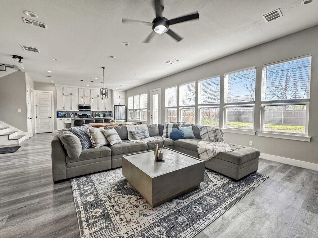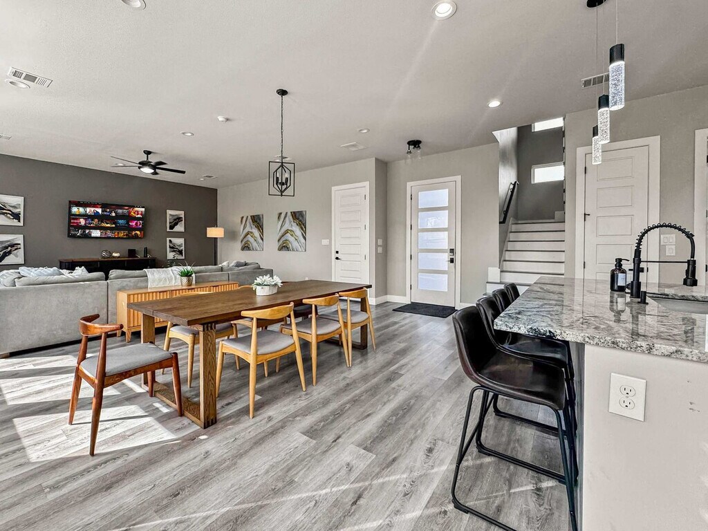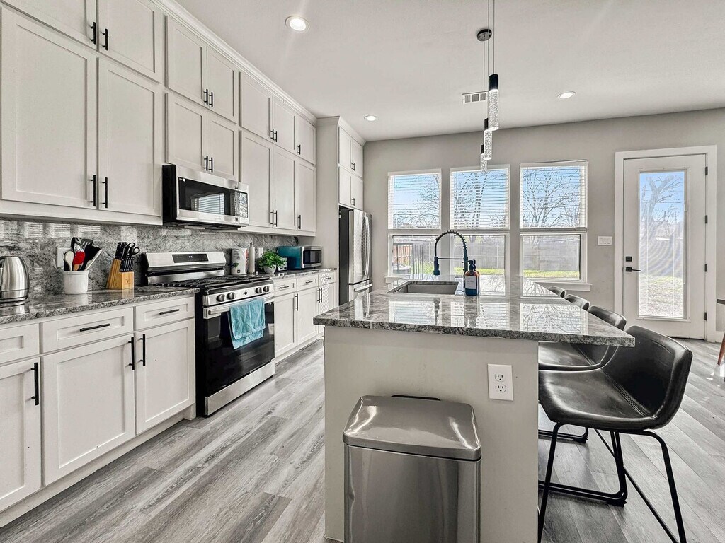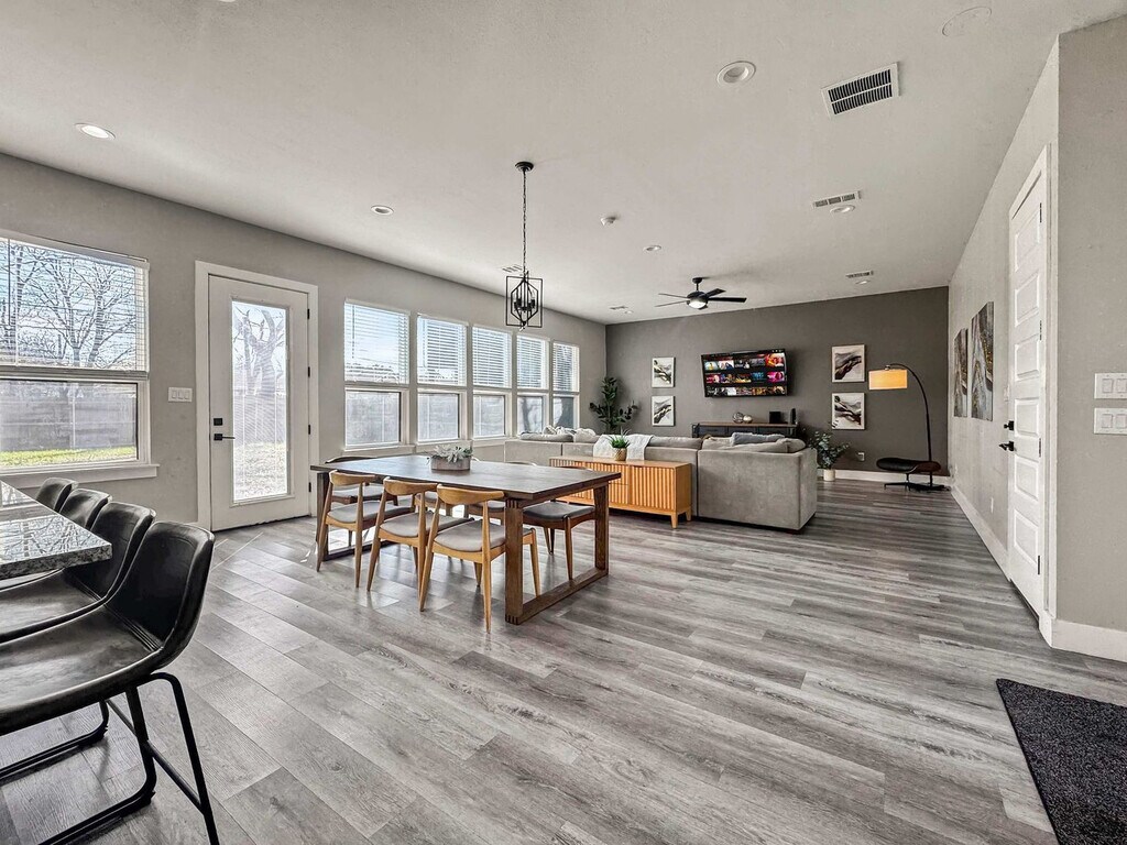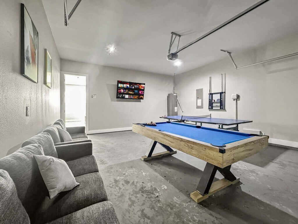 Feel at home in this spacious 3-bedroom, 2.5-bath Dallas home near Reunion Tower, designed for comfort and unforgettable stays. This house comfortably accommodates up to 12 guests and features a sun-filled living room with a plush seating area and a 50-inch smart TV. The fully equipped kitchen includes modern appliances and generous counter space. Downstairs, you'll find a private basement game room with a ping pong table, pool table, comfortable sofa, and TV. Enjoy high-speed Wi-Fi, fresh hotel-quality towels, and complimentary toiletries. Pets are welcome with prior approval and are subject to a cleaning fee of $25/night for stays of 1–4 nights, $200 per pet for stays of 5–29 nights, or $300 per pet for stays of 30+ nights. Please request approval before booking to avoid any issues. Located near Reunion Tower, Downtown Dallas, the Dallas Arts District, and Klyde Warren Park, this home places you close to top attractions, dining, nightlife, and business hubs. Smoking is strictly prohibited inside the property, and a cleaning fee of $500 will be charged for any violation. Check-in time is after 4 PM, and check-out time is by 10 AM. Late check-outs without prior approval will incur additional charges. Guest verification is required prior to arrival. All guests must provide a valid government-issued photo ID, verify contact information, and complete a secure online verification process. A background check may be requested. Includes a dedicated workstation in the first bedroom and a workstation in the second bedroom. [SI]