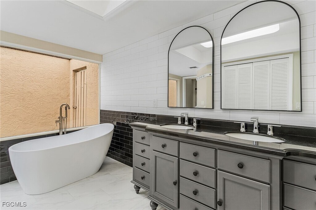 Welcome to your dream waterfront oasis! This spacious 3-bedroom,2-bathroom,den/flex space,with a 3-stall Garage,is ideally situated on a Gulf access canal with south-facing rear exposure for the beautiful Florida Sunshine all day! Offering breathtaking water views and a tranquil atmosphere. The living and family rooms provide ample space for relaxation and entertainment. The split floor plan ensures that the master suite is a serene retreat,complete with a master bath boasting a solid surface finish and a large garden soaking tub – perfect for unwinding after a long day. Enjoy meals in style at the formal dining room or the charming breakfast nook overlooking the inviting screened lanai,pool,and spa. For boating enthusiasts,the dock and lift provide easy access,allowing you to explore the waters at your leisure. Schedule your showing today and envision a life of comfort,style,and natural beauty.