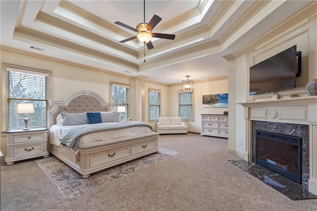 Available semi furnished or furnished. Lawn care and pool maintenance included. Close to Mount Paran private school. This custom-built,European-inspired executive home offers a refined layout with thoughtful architectural detail throughout. Features include hardwood flooring,statement lighting,coffered ceilings,and expansive living spaces designed for both everyday comfort and entertaining. A grand entry and sweeping staircase lead to a two-story great room with floor-to-ceiling windows,a stone fireplace,and French doors opening to the rear deck. The gourmet kitchen is well-appointed with granite countertops,an oversized center island,ample cabinetry,a butler’s pantry,and a walk-in pantry. Adjacent formal dining and living rooms provide additional gathering spaces,each with its own fireplace. The main level includes a spacious guest suite with a full adjoining bath. Upstairs,three additional guest suites offer private baths and generous closet space. The primary suite serves as a private retreat,featuring tray ceilings,a marble fireplace,a sitting area,and a spa-style bath with dual vanities,soaking tub,and tiled shower. The laundry room is conveniently located off the primary closet. The terrace level is designed for flexible use and entertaining,featuring a wine cellar,private gym,kitchenette with wet bar,lounge and game areas,full bath,and media room with access to the backyard. Outdoors,the private fenced yard includes a saltwater gunite pool,spa,gas fireplace,and built-in grill—ideal for relaxing or hosting. Situated on a quiet cul-de-sac,the home is just minutes from shopping,dining,and top-rated schools. MLS ID 7701693