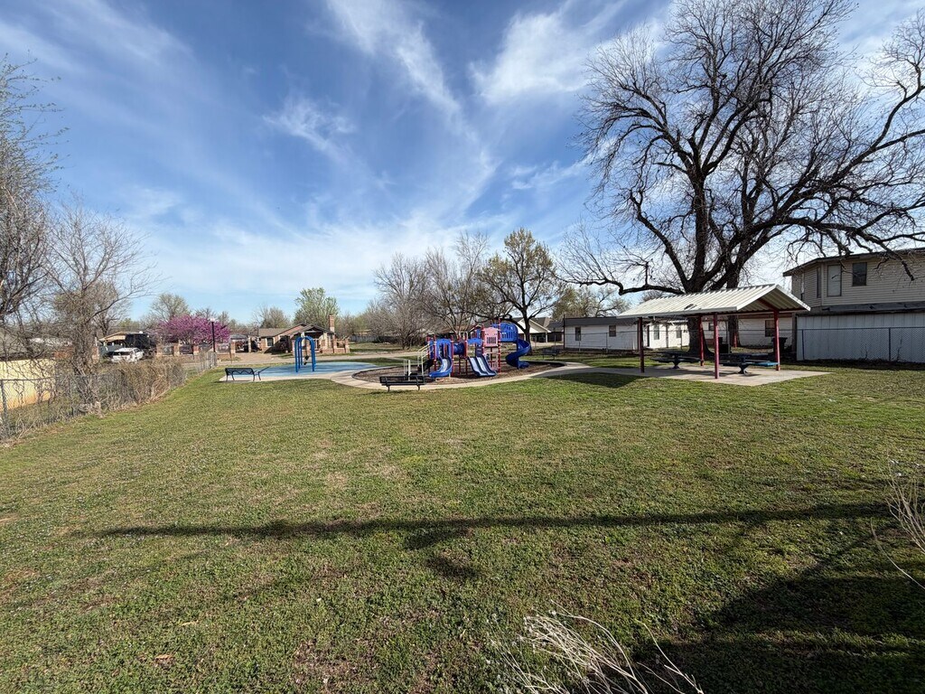 Check out this updated two bed home with a large yard, storage shed right in front of a public park with nice playground for the kids. Large kitchen granite counters stainless gas stove, new refrigerator and light bright colors in this home. Enjoy your own space near downtown. Schedule your tour today 550 min credit must make 2.5x the rent $25 per month per pet (up to three) security deposit $875.00 utilties: mowing, water sewer trash, electric and gas in your name.