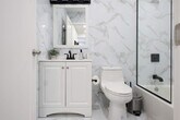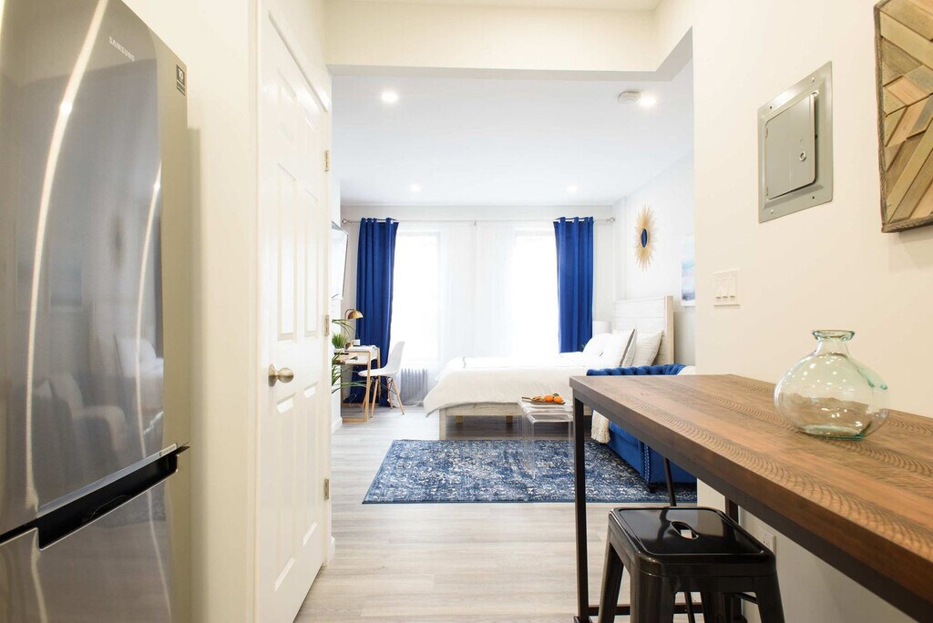This brand new studio apartment is located on the Upper East Side of Manhattan, in the heart of the neighborhood. The location is ideal for both business and leisure travelers, with many restaurants, bars, shops, and other amenities nearby. The apartment is conveniently located near subway stations, with the Q train only a 2-minute walk away and the 6 train about 5 minutes away. This studio is a brand new and fully renovated apartment that offers a comfortable and luxurious living experience. It features a spacious living room lounge, a cozy bedroom with a queen-size bed and memory foam mattress, a full bathroom, a fully equipped kitchen, and an in-unit washer and dryer. The apartment boasts high-quality renovations, new furniture, ample natural light through two big windows, and complimentary clean linens and towels. Guests will also enjoy the added convenience of complimentary high-speed wireless internet and 120 HD cable channels. This apartment is an ideal choice for those seeking a memorable New York City vacation or a comfortable and convenient stay. Under 15-pound dogs are allowed with owner approval. One pet is allowed with a $350 pet fee. The neighborhood offers a variety of dining and shopping options, with many highly recommended restaurants, bars, and trendy shops nearby, as well as various amenities such as supermarkets, pharmacies, coffee shops, delis, fast food, nail salons, cleaners, and bank services. The area is considered a convenient place with plenty of options. Getting around East 75th Street can be done by several means of transportation, including walking, biking, or taking public transportation such as the subway or bus. The subway has several stations located near East 75th Street, including the 72nd Street subway station on the 1, 2, and 3 lines, the 77th Street subway station on the 6 line, and the 86th Street subway station on the 4, 5, and 6 lines. Additionally, several bus lines also run through the area, making it easy to get around. Taxis, Ubers, and other ride-hailing services are also available, making East 75th Street a well-connected location for transportation. New York City's heating season is until the end of May. Beginning around mid-April, window air conditioning will be installed in the apartment. Contact us if you would like to request an earlier installation. Smoking and parties are not allowed. Please keep quiet and respectful for your neighbors and follow trash recycle rules. [SI]
