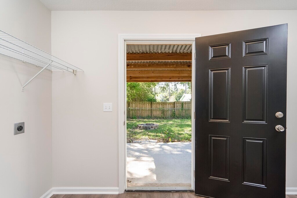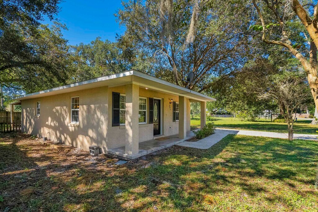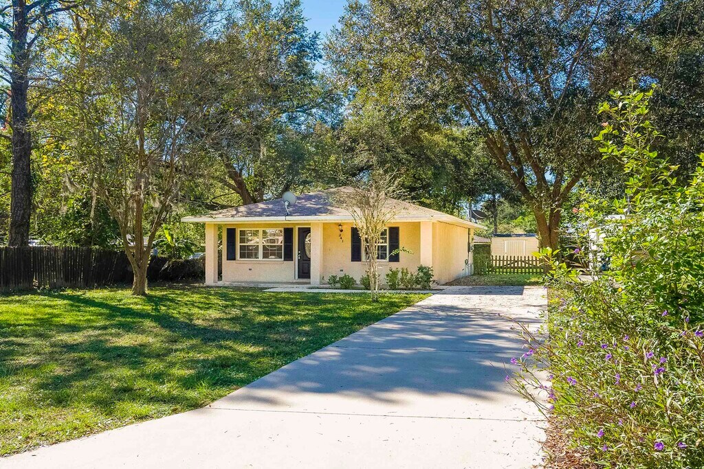 Cute as a Button! This 2 bedroom 1 bath home has Open Floor plan with roomy kitchen and lovely front porch plus back covered porch. Double sink vanity in bathroom. Country living setting in a modern home. Washer/Dryer hookup. Close to Publix for grocery shopping and Easy Access to Vilano Beach & Downtown from this location. BYOM ~ Bring your own mower. Cute backyard.