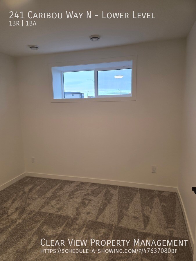 ?? Brand New 1 Bedroom Basement Suite – Utilities Included ?? 241 Caribou Way N, Lethbridge, AB | T1H 7J7 Be the first to live in this never-lived-in, brand new 1 bedroom basement suite located in a quiet North Lethbridge neighborhood. This modern suite offers comfortable living with all utilities included, making budgeting simple and stress-free. ? Suite Features: Brand new construction – never occupied 1 spacious bedroom with closet Bright, open-concept kitchen and living area Modern finishes throughout Full bathroom Private in-suite laundry Separate entrance All utilities included (power, heat, water) ?? Location Highlights: Situated in a new, family-friendly community Easy access to shopping, schools, parks, and major routes Quiet residential street with ample nearby amenities This is a perfect option for a single professional or quiet couple looking for a fresh, low-maintenance home in a great location. ?? Schedule a viewing here: Lease Details: ?? 6-16 month lease ?? Security deposit is equal to one month’s rent ??? Tenant insurance is required ?? Utilities are included ?? No AC ?? Got a pet? Small pets may be welcome with a $50/month pet fee (per pet) All residents are automatically enrolled in our Tenant Benefit Package, which includes: ?? Easy-to-use online portal for rent payments and repair requests ?? Furnace filter delivery every six months (if needed) ?? 24/7 maintenance support for peace of mind ?? Free e-payments each month ?? One lockout service included every six months A quick rental application is required, and we’ll reach out to your references before final approval. Ready to apply? — Click here to start your application: