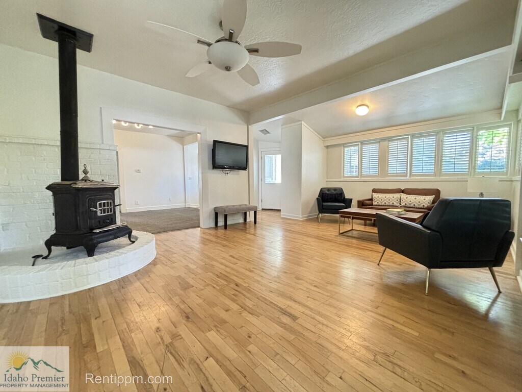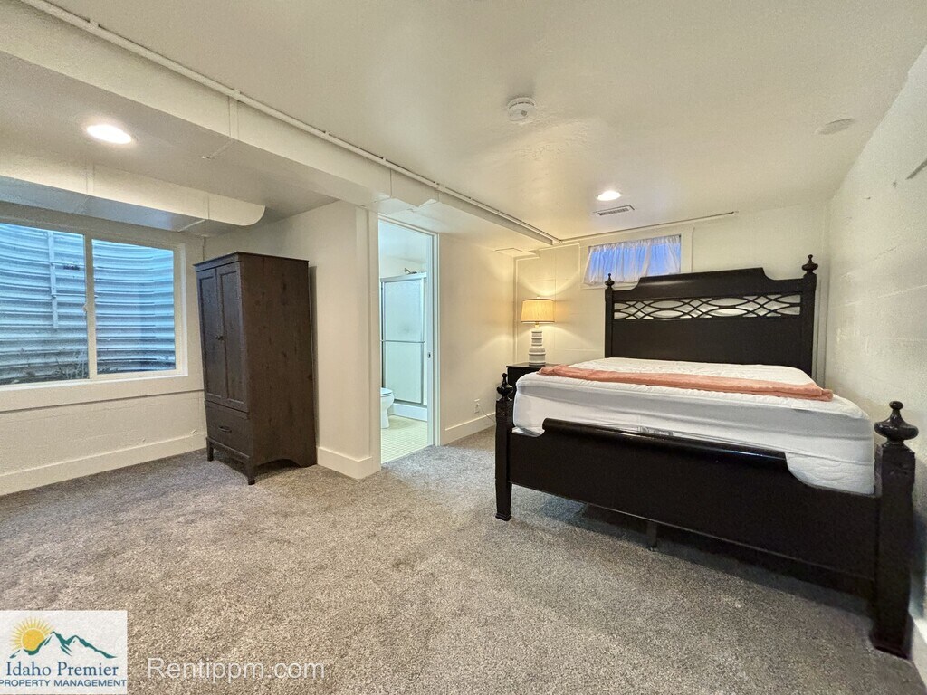 This property, situated in the sought-after Northeast End of Boise, offers the ideal blend of vintage character & modern upgrades! 3 main-floor bedrooms include 1.5 bathrooms. Plus a welcoming basement includes a bedroom with en-suite bathroom, an abundance of built-in shelving, & washer/dryer. Perhaps the inviting main-living space is an area you'll enjoy the most! Offering an over-sized living room with hardwood floors & wood-burning fireplace. In addition, there is an adjoining family/lounge area and nearby kitchen complete with newer quartz countertops & warm wood-tone cabinetry. Located just off Warm Springs Avenue, this home offers unbeatable proximity to downtown Boise, the University, St. Luke's Hospital, the foothills, & the scenic Boise River Greenbelt. Outside, enjoy a serene backyard retreat perfect for entertaining, featuring a stone patio, a generous yard, a 6' x 8' storage/potting shed, & a 1-car detached garage that can be used as a workout center. With its timeless character, thoughtful updates, & prime location, this charming bungalow offers the best of Boise living! NOTES: Tenant is responsible for all utilities and landscaping. Pets need to be approved by owner