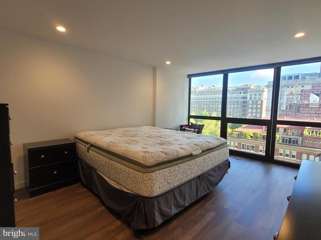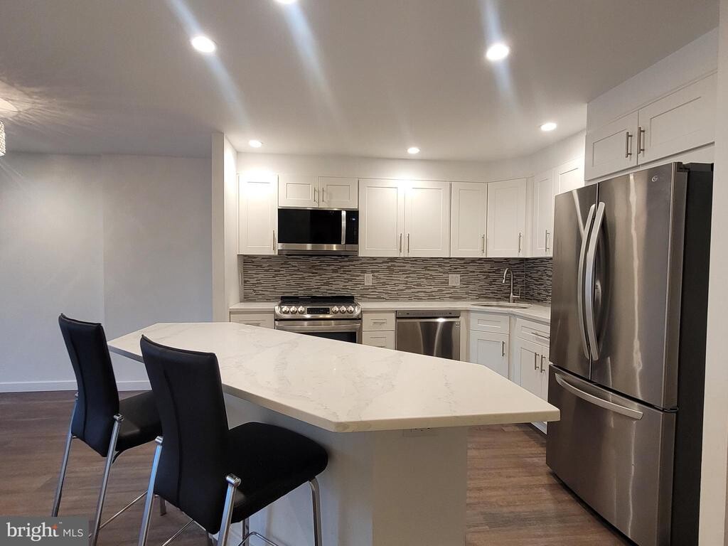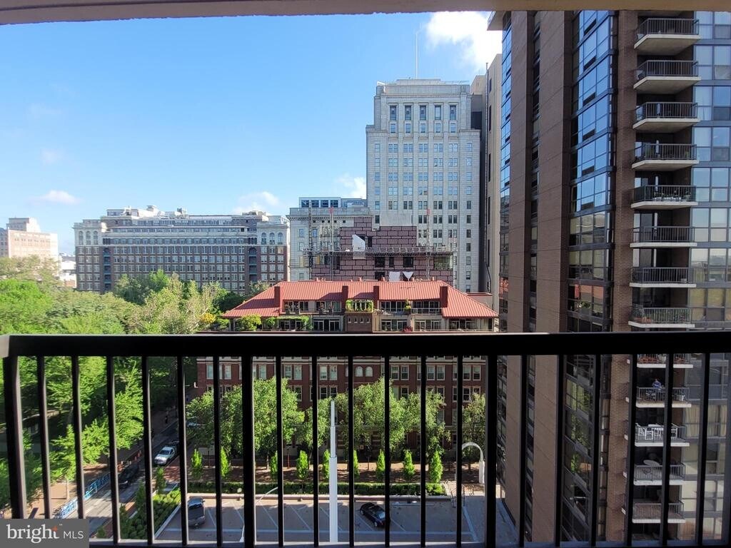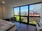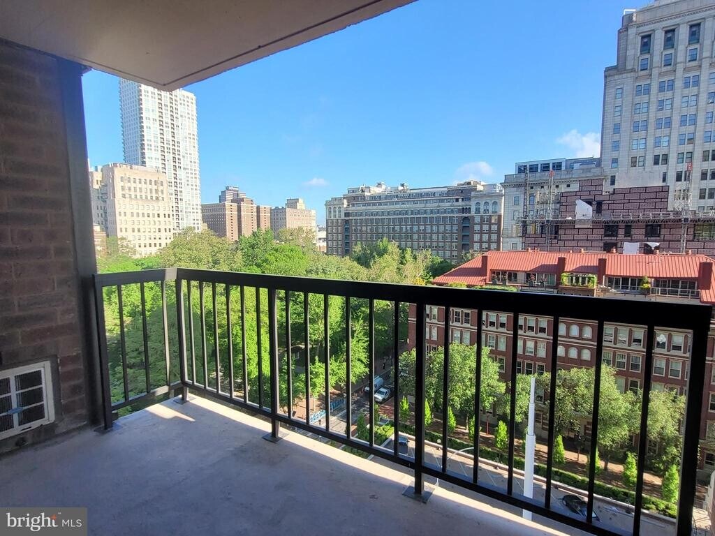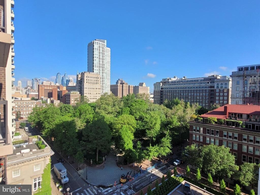 Bright, updated one bedroom with a private balcony boasting Washington Square views at Independence Place. This beautifully renovated unit was decorated by an interior designer and features custom closets and high quality finishes throughout. Enter past a coat closet into the expansive great room with living/dining room and open kitchen. The spacious living/dining space features oversized windows and access to the private balcony with views of Washington Square and the Center City skyline. The fully updated kitchen has modern white cabinetry, quartz countertops, high-end stainless steel appliances, tile backsplash, and an island with breakfast bar. Adjacent to the kitchen is a large laundry closet with stacked LG washer/dryer. The light-filled bedroom features a wall of floor-to-ceiling windows, a wall closet, and a large walk-in closet, both with built-ins. Across from the bedroom is the updated bathroom with large modern vanity, glass walk-in shower, and tile floor. Additional highlights include vinyl floors, recessed lighting, and excellent closet space throughout. Residents of Independence Place enjoy a twenty-four-hour doorman and concierge, brand new lobby and state-of-the-art fitness center, on-site management, individual heat & air conditioning controls and on-site parking with direct access to the building, subject to availability and a monthly fee.