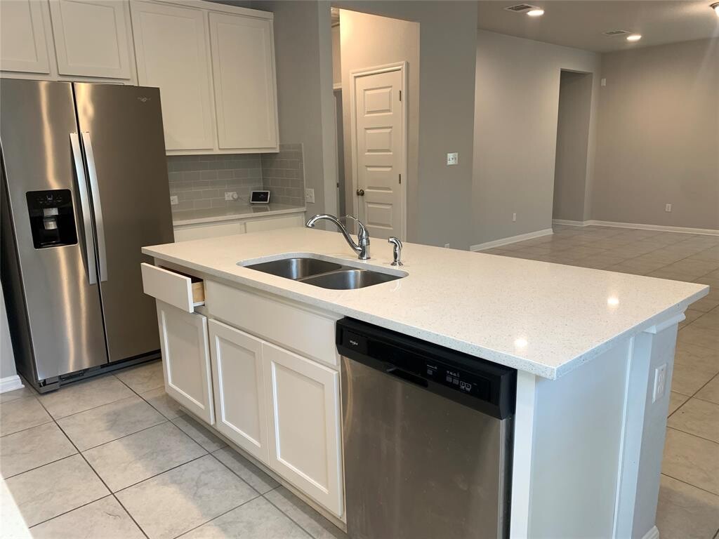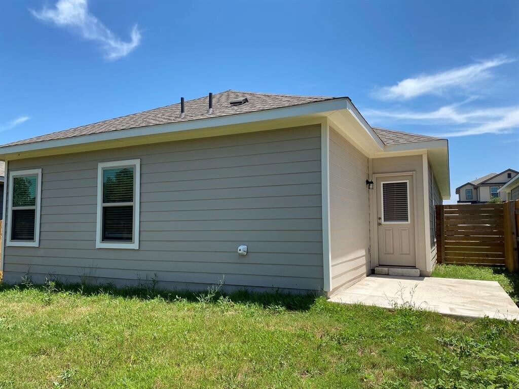 November rent free! Bright and cheerful 1-level Grayson Community home located in Leander. Plenty of natural light. Floors are ceramic tiled with bedrooms carpeted. Kitchen lined with beautiful white cabinets, includes a pantry, a double sink, and black/stainless appliances. Spacious open floor plan leads to the living/dining area. Separate laundry room. Master bedroom has private bath with a double vanity and a large walk-in shower. Google Nest Hub. Fully fenced private backyard.