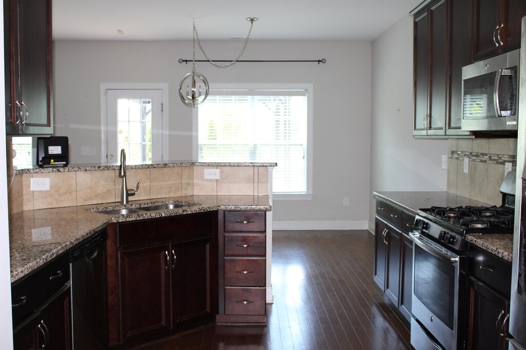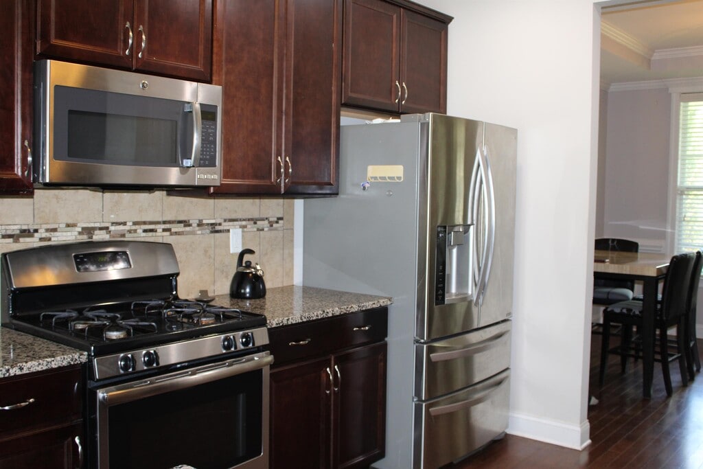 Five bedroom home nestled in the heart of Holly Springs. Hardwood Floors Throughout! Open floor plan w/separate dining area. First floor bedroom and full bath. Kitchen features SS appliances and granite counters. Spacious loft area leading to 4 bedrooms and laundry on 2nd floor. Primary suite has ensuite bath with soaking tub and separate shower, double vanity and water closet. Walk-in closets in most bedrooms. 2 car garage. Pergula-covered back patio and backyard is fully fenced for privacy. On-site washer and dryer. Target is right around the corner and close to 540.