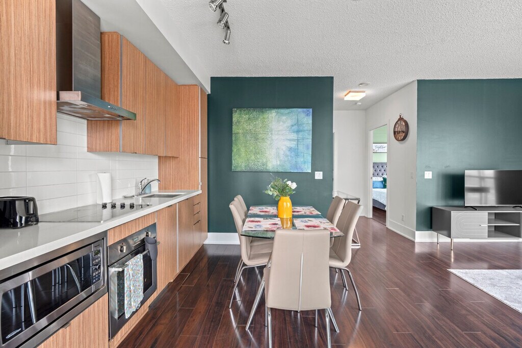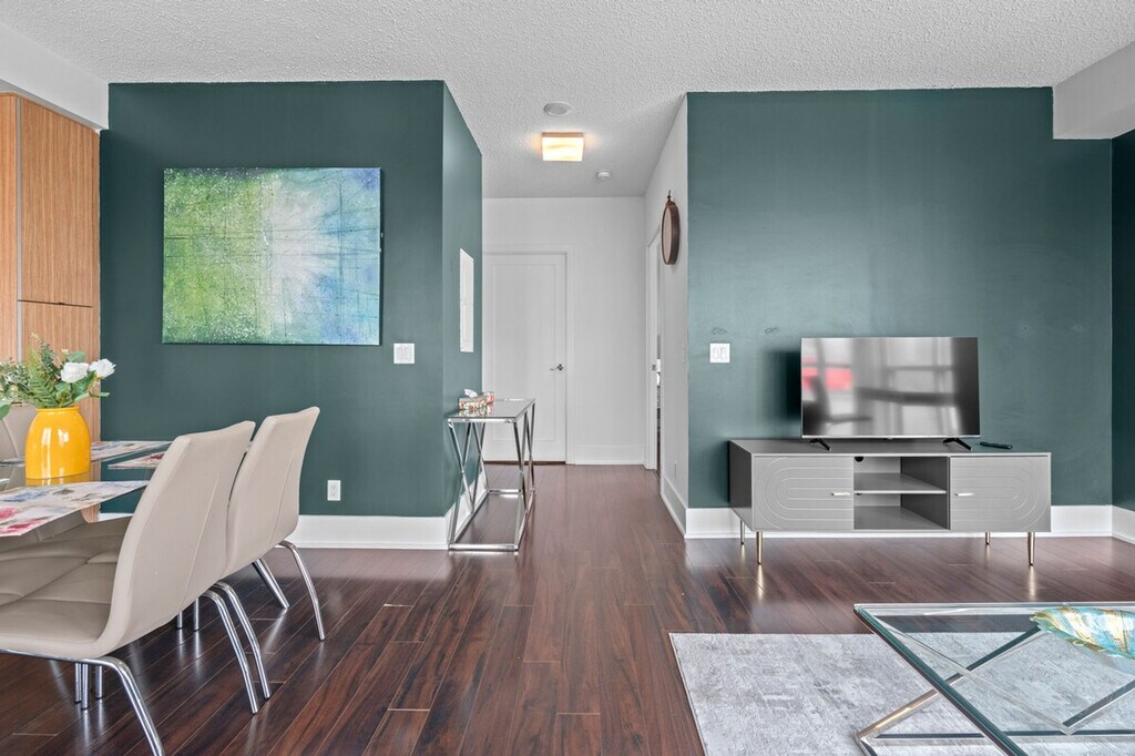 Experience luxury and feel at home in this comfortable suite in the heart of downtown Toronto, located just steps away from Union Station, CN Tower, Rogers Center, Air Canada Center, and Harbourfront. This suite has everything you need to feel right at home, including a fully functional kitchen with tea, coffee, a kettle, a coffeemaker, and a toaster. A washer and dryer with supplies are available for your convenience. The bathroom is equipped with towels, shampoo, conditioner, body wash, a hair dryer, and other toiletries. Parking is available for $25 per night if you inform us at least 24 hours prior to arrival. Alternatively, there is paid public parking across the street for $30 per 24 hours. We offer a travel crib (for babies 0-18 months) and bed rails for $10 per item per night; please book in advance. This centrally located apartment is close to many attractions. Every guest must provide their personal information prior to check-in, including the full names of every guest staying in the apartment and a selfie with your ID as an anti-fraud measure. Guests whose names or ID do not match the provided information are not allowed into the building. The minimum age for booking is 25 years, but for reservations of 7 nights or more, it is possible to check-in from the age of 18. Pets are not allowed in the apartment. Registration Number: STR-2506-GYTHPV [SI]