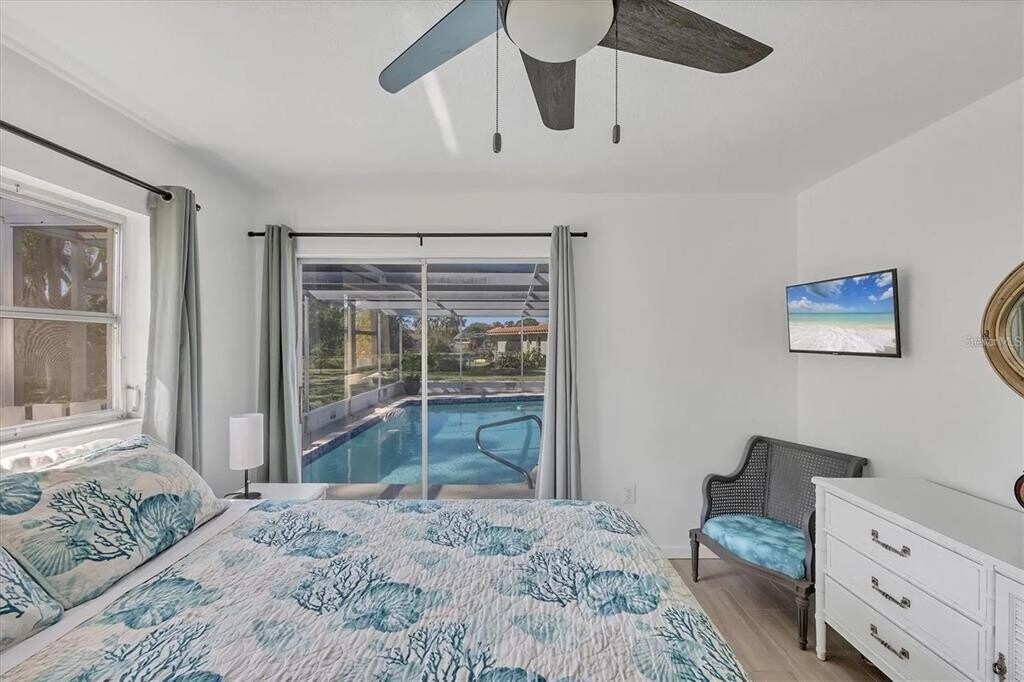 Available month-to-month April 1,2026 through December 2026,this beautifully updated Gulf Gate Woods pool home is one of Sarasota’s most sought-after retreats. Fully furnished and designed for comfort,this 3-bedroom,2-bath home sits on an oversized lot in the serene Gulf Gate Woods neighborhood and features updated hurricane doors and windows for added security and peace of mind. The thoughtfully designed split floorplan,ceramic tile throughout,and whole-house water filtration system enhance the home’s luxury feel. Enjoy seamless indoor-outdoor living with a private heated,caged pool accessible directly from the primary suite,guest bedroom,and main living area—perfect for swimming,lounging,or relaxing in an insect-free outdoor oasis. The large backyard is ideal for cookouts and gatherings,while the quiet residential location places you close to everything Sarasota has nearby,from scenic bike rides through Gulf Gate Woods to beautiful beaches just minutes away. Your stay includes Wi-Fi,air conditioning,water,trash removal,laundry,lawn service,and pool maintenance,ensuring a hassle-free experience from start to finish. Now available April 2026 through December 2026—don’t wait,this exceptional home will book quickly. Secure your stay today! MLS# A4672343