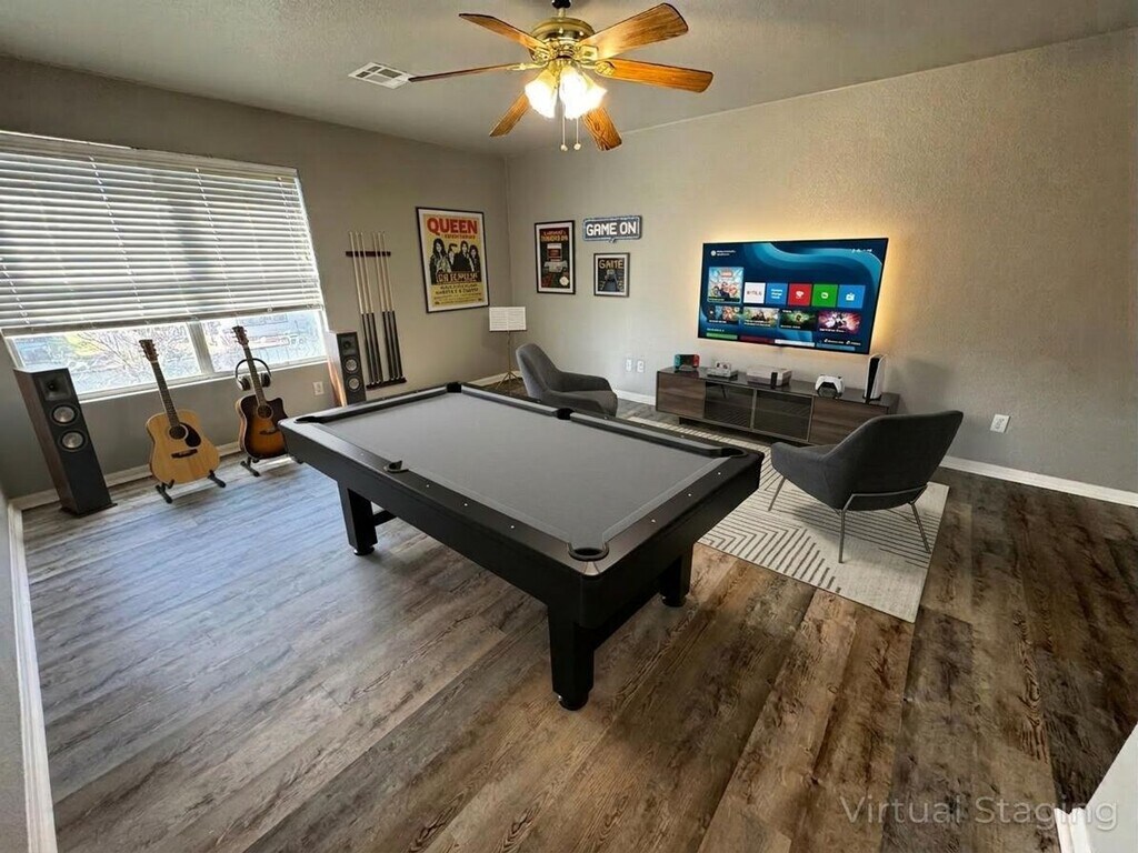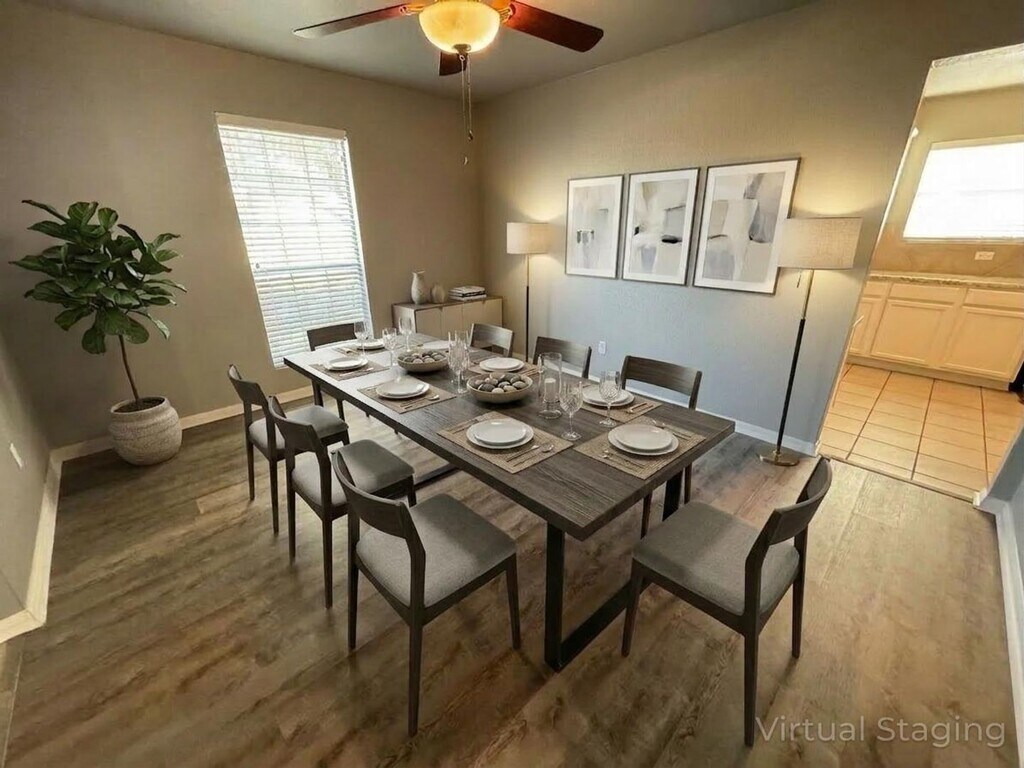 View 360° virtual tour: Welcome to this stunning 4-bedroom, 2.5-bathroom single-family home on a corner lot for rent in Killeen, Texas. Upon entry you're greeted by high ceilings and an inviting formal dining room that connects to the kitchen. The spacious kitchen is equipped with stainless-steel appliances, including glass top stove, microwave, dishwasher, and side-by-side refrigerator with ice and water dispensers. The kitchen also includes a second dining area, as well as a breakfast bar. Just off the kitchen is a convenient laundry room with washer and dryer connections, and storage cabinets. The primary bedroom and half-bath are located downstairs, while a loft, three bedrooms, and a shared full bathroom are located upstairs. Additional features of this home include covered back patio, fenced-in back yard, attached 2-car garage, and extra-wide driveway. Pets of all sizes are welcome! Appointments aren't required to tour. Contact us or stop by our Killeen office to learn more and see this home in person once it becomes available! We are located at 1020 W Jasper Drive, Killeen, TX 76542. Disclaimer: The furnishings or enhancements shown are AI-generated and intended for inspiration only. They may not reflect the actual scale, condition, or current features of the property.