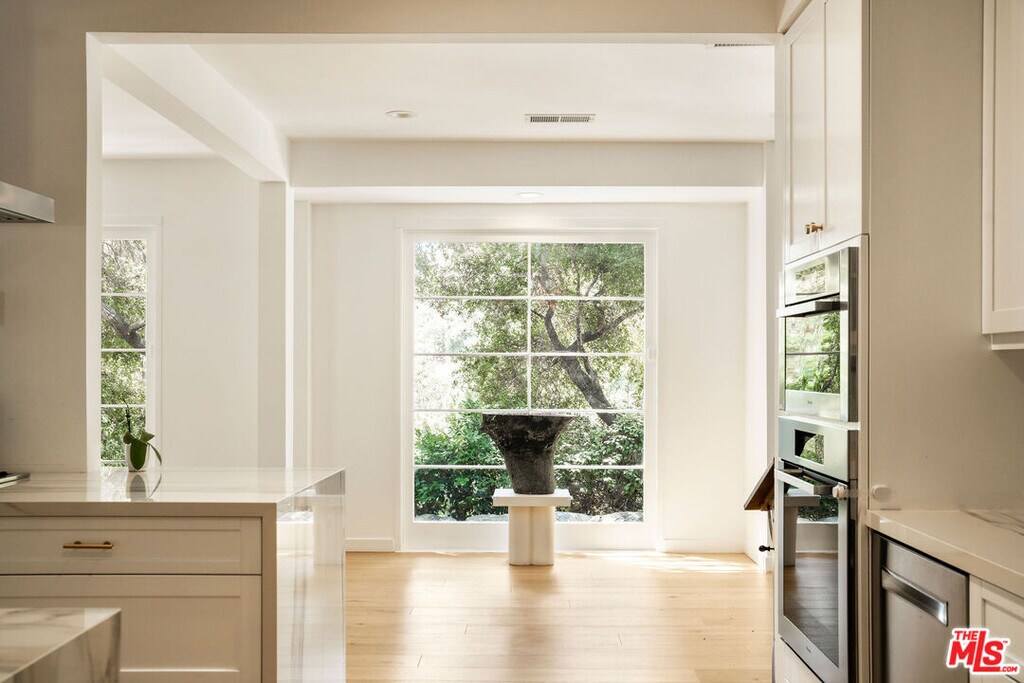 Tucked away among mature trees on coveted lower Nichols Canyon Road in the Hollywood Hills, this secluded traditional residence offers the rare combination of privacy, scale, and natural beauty just minutes from the heart of the city. Set on an expansive 18,000 square foot lot, the home unfolds into over 4,000 square feet of refined living space, thoughtfully designed for both entertaining and everyday comfort. The residence features 4 bedrooms, 4 bathrooms, and a dedicated office, with a floor plan that balances gracious proportions and intimate warmth. Walls of glass throughout the main level frame serene canyon and treetop views, allowing natural light to pour in and creating a seamless connection to the outdoors.The spacious living room showcases new wide-plank hardwood floors, a fireplace, and a built-in bar, an inviting setting for gatherings large or small. The open layout flows effortlessly into the dining area and a spectacular chef's kitchen, completed in 2022. Highlights include a dramatic waterfall quartz island, professional-grade stainless steel appliances, abundant custom cabinetry, and a thoughtfully positioned cooktop that keeps the host engaged with guests.The main-level primary suite is a private retreat, offering direct access to a deck surrounded by lush greenery and a luxuriously renovated spa-inspired bath with soaking tub, separate shower, and dual vanities. The lower level features two generously sized bedrooms, each opening to private patios, connected by a cozy library nook. A discreetly hidden 800-bottle temperature-controlled wine cellar adds an elevated touch. A separate upstairs wing provides exceptional flexibility, with a private guest suite and bath along with a gym or additional office: ideal for guests, extended stays, or creative use. Outdoors, the property transforms into a tranquil sanctuary. Towering oak trees, fruit trees, climbing vines, and lush landscaping frame the pool and spa, creating a magical, resort-like environment with exceptional privacy. The sounds of nature and wildlife enhance the sense of retreat. Extensive upgrades offer peace of mind, including a whole-house generator, roof sprinklers, alarm system, central HVAC, new pool plaster and equipment, and a recently replaced sewer line. Located moments from hiking trails and iconic canyon routes, this Nichols Canyon retreat presents a rare opportunity to enjoy immersive natural surroundings with close proximity to the city. Also available for sale MLS# 26639555