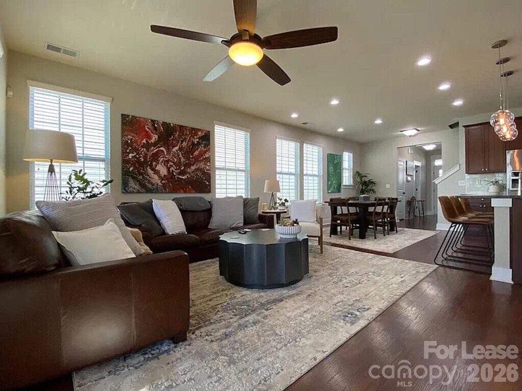 This charming two-story single-family home offers a front porch and a spacious open-concept layout with wood flooring throughout. The kitchen is equipped with stainless steel appliances,granite countertops,a large island,and a sizable pantry. Along with the three bedrooms,the home also includes a versatile studio or office space. The primary bedroom features skyline views,an upgraded bathroom,and a custom closet,while two additional guest bedrooms—each with custom closets—share an upgraded bathroom. The backyard is designed for both relaxation and entertainment,featuring a fenced-in yard,a screened-in porch with an outdoor TV mount,a patio with a dedicated grilling area,and a walkway that leads to a detached two-car garage. Located in the Brightwalk community,the home is in close proximity to Uptown Charlotte,Charlotte Music Factory,the upcoming 100-acre Camp North End Innovation Corridor,as well as nearby breweries,coffee shops,co-working spaces,and restaurants. Trash pickup and sewer included in the rent. Tenant is required to pay for all other utilities - water,electricity,gas,cable/internet,etc Trash pickup and sewer are included in the rent. Tenants are responsible for all other utilities,including water,electricity,gas,etc. Dogs and cats are welcome; however,a non-refundable pet deposit will be required. MLS ID CAR4354227
