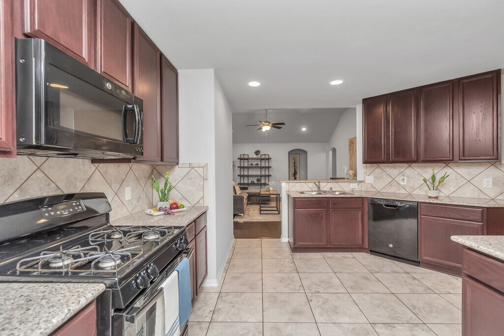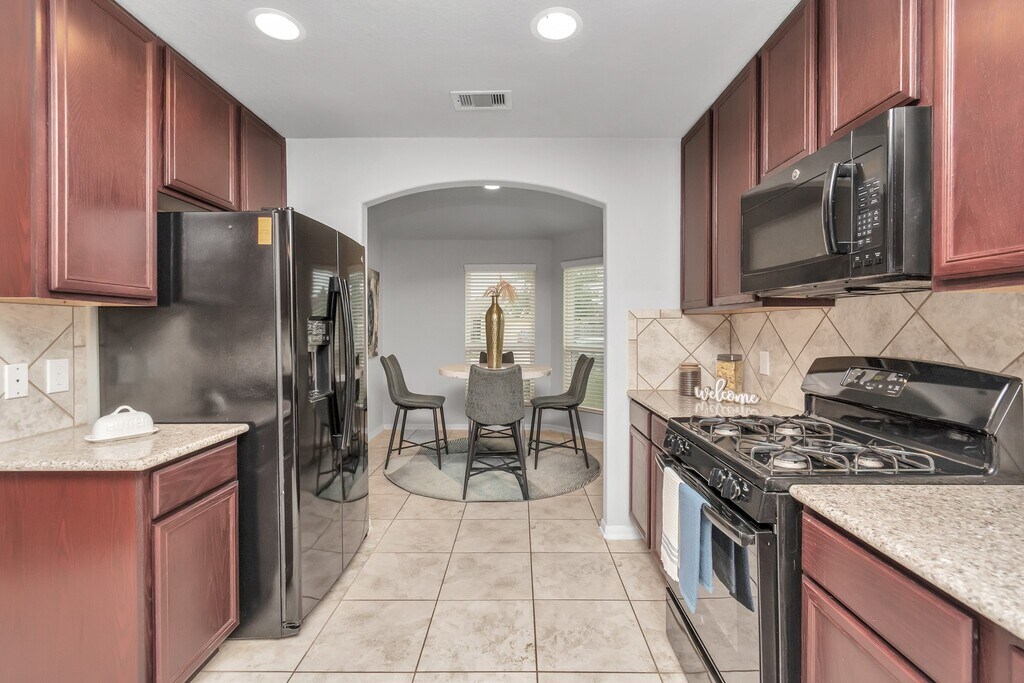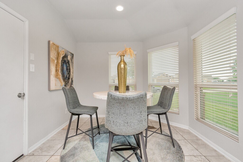 This well maintained stunning house is waiting to be your home. Enter the home to a inviting living room with ample natural light and wood-look laminate flooring. Home has 9 foot vaulted ceilings,archways and open concept floor plan. The large kitchen has ample cabinets,a large pantry,granite countertops,stainless steel appliances and includes a Refrigerator. From the kitchen enter the sunny breakfast nook. The formal dining room and primary bathroom have beautiful accent walls for added warmth. Master retreat provides privacy from secondary bedrooms. Master bath has both a bathtub and a separate shower. A separate utility room is equipped with a washer. Fairpark Village amenities include walking trails,area park and a lake. Easy access to 1-69 and major shopping centers. MLS ID 6569783