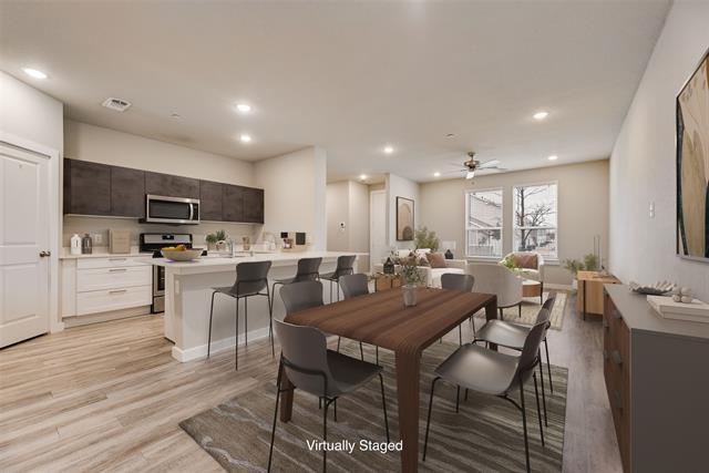 MODERN STYLE, COMFORT and CONVENIENCE in the heart of McKinney! This like-new and beautifully maintained townhome offers modern finishes and an easy, low-maintenance lifestyle you’ll love. Step inside to an open, light-filled floor plan featuring luxury vinyl plank flooring throughout and fresh neutral paint. The kitchen is the heart of this home, showcasing gorgeous quartz countertops, center island, European soft-close cabinetry, walk-in pantry, stainless steel appliances, gas range, breakfast bar seating and abundant cabinet space. A stainless steel refrigerator is included, making your move even easier. Upstairs, you'll find 4 spacious bedrooms, perfect for families or roommates. The primary suite features a ceiling fan, dual sinks with quartz counters, a large walk-in shower, ample cabinetry, and an oversized walk-in closet with plenty of room to stay organized. You’ll appreciate the rear-entry 2-car garage with an additional storage room, perfect for bikes, seasonal decor, or extra belongings. With no yard to maintain, you can enjoy a true no-maintenance lifestyle. Located just minutes from Central Expressway, you’ll have quick access to dining, shopping, and entertainment while still enjoying a comfortable and quiet neighborhood setting. Pets are welcome, so bring your furry friends! This home is available immediately. Come take a look today.