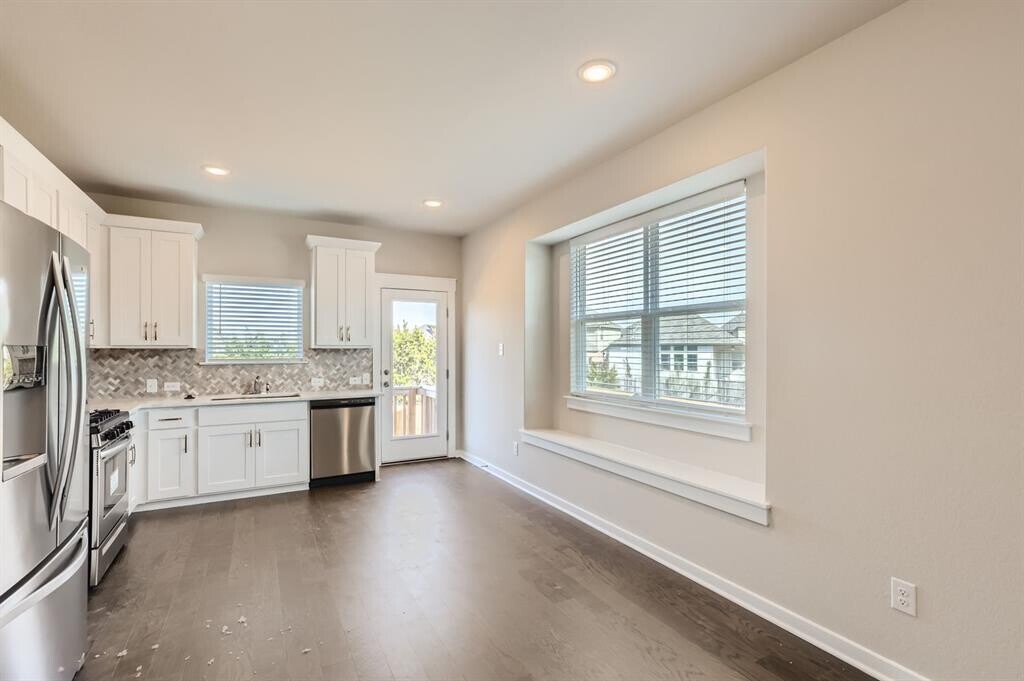Nestled at the end of a cul-de-sac in a sought-after neighborhood, this brand-new two-story house offers a perfect family space right in the heart of Leander. Completed in October 2023, step into a home with all-new appliances and fixtures. The open layout of the main living area provides ample room while maintaining a cozy atmosphere. The loft windows and the bay window in the kitchen allow for natural sunlight to permeate all corners, and white cabinets and fixtures provide modern finishes throughout the entire home. The master bedroom is conveniently located on the first floor, and features dual vanities, a linen closet and a walk-in closet in the bathroom. The home comes with a brand-new washer, dryer and refrigerator as well. This is the ideal location for families with kids, with the community park located just steps away and a greenbelt with a walking trail located right behind the house. The home is situated within the well-recognized Leander Independent School District. Additionally, this home is conveniently located near HEB Plus, the Leander Metro Station (Light-rail to Downtown Austin Convention Center), and South Brook playground. There are numerous restaurants, shops, and entertainment options nearby in the growing Leander area. There's easy access to 183 A and it's a 20-minute commute to the North Austin tech corridor. MLS ID 3132193