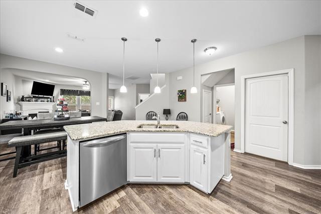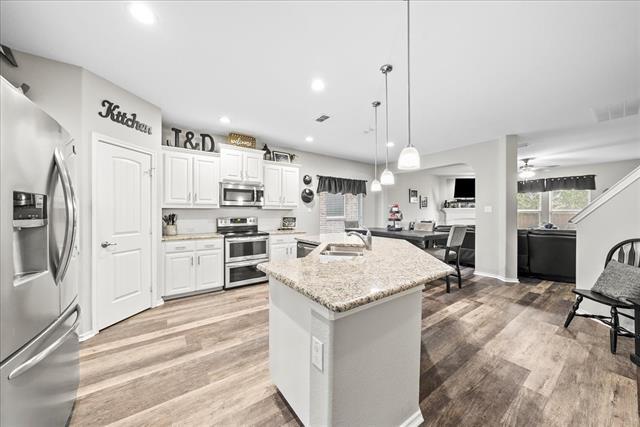 Step into this meticulously maintained, move-in ready 4-bedroom, 2.5-bath stunner offering over 2,500 sq ft of spacious living in one of Denton’s most desirable areas. From the moment you arrive, you’ll be greeted by lush landscaping and a welcoming covered front porch—perfect for your morning coffee. Inside, enjoy an open-concept floor plan flooded with natural light. The expansive living area features gorgeous luxury vinyl plank flooring and a cozy fireplace, creating the perfect spot to gather. The beautifully updated kitchen is a true showstopper with gleaming granite countertops, a large island ideal for entertaining, stainless steel appliances, chic tile backsplash, and crisp white cabinetry that will delight any home chef. The generously sized primary suite is conveniently located downstairs and boasts an elegant en suite bathroom with a relaxing soaking tub, separate walk-in shower, and dual vanities. A flexible front space can serve as a formal dining room, office, or play area to fit your lifestyle. Upstairs, a massive game room provides the perfect hangout, along with three additional bedrooms and a full bath. Step outside to your private backyard oasis complete with an extended covered patio featuring a wood-paneled ceiling and shade louver—ideal for summer barbecues or relaxing evenings. Located just moments from top-rated shopping, dining, and entertainment, this home is zoned for the highly acclaimed Guyer High School, ranked among Denton County’s top 10. With unbeatable curb appeal, modern updates, and a layout designed for both entertaining and everyday living, this is the one you’ve been waiting for. This home is available fully furnished for $3,500 per month—perfect for those seeking a turnkey rental opportunity! Short term rental considered!