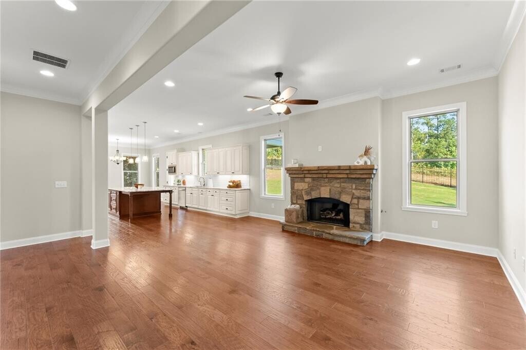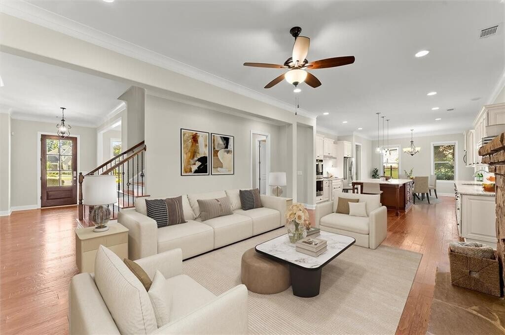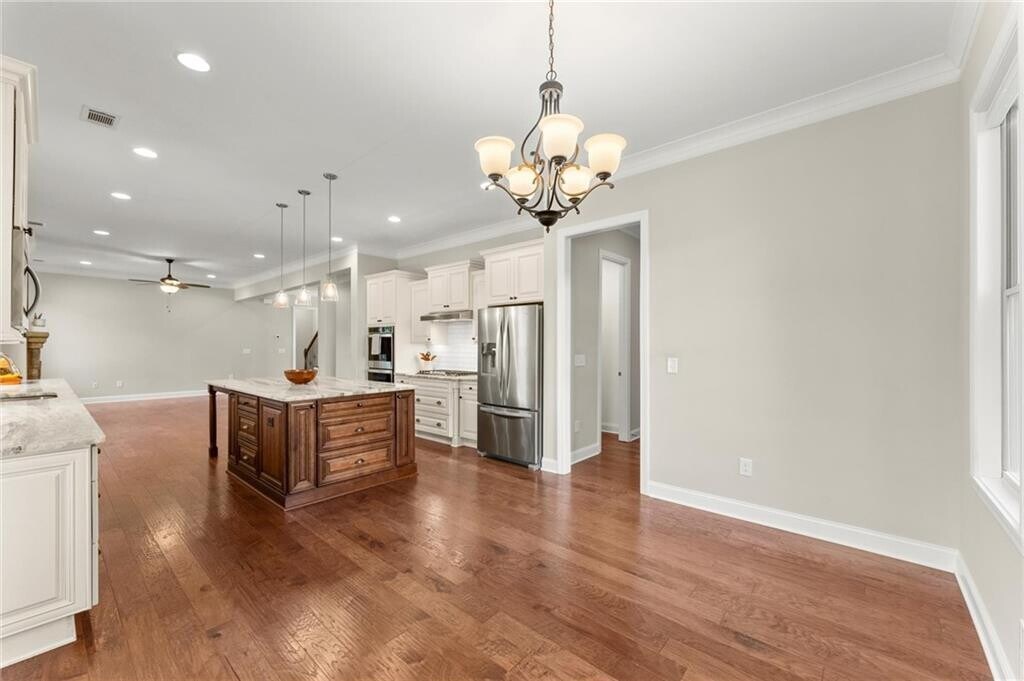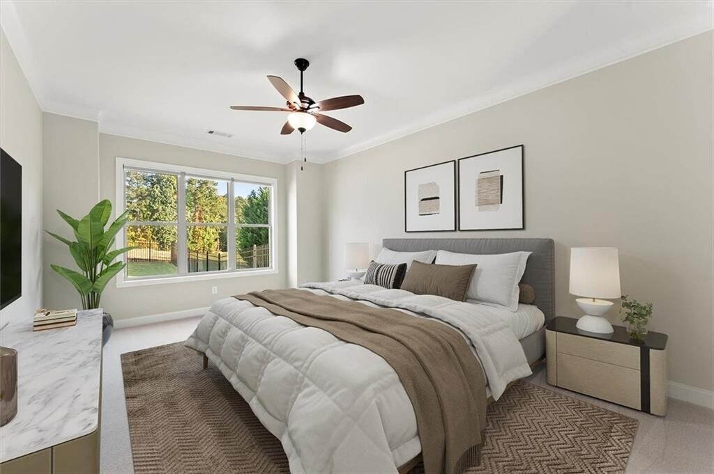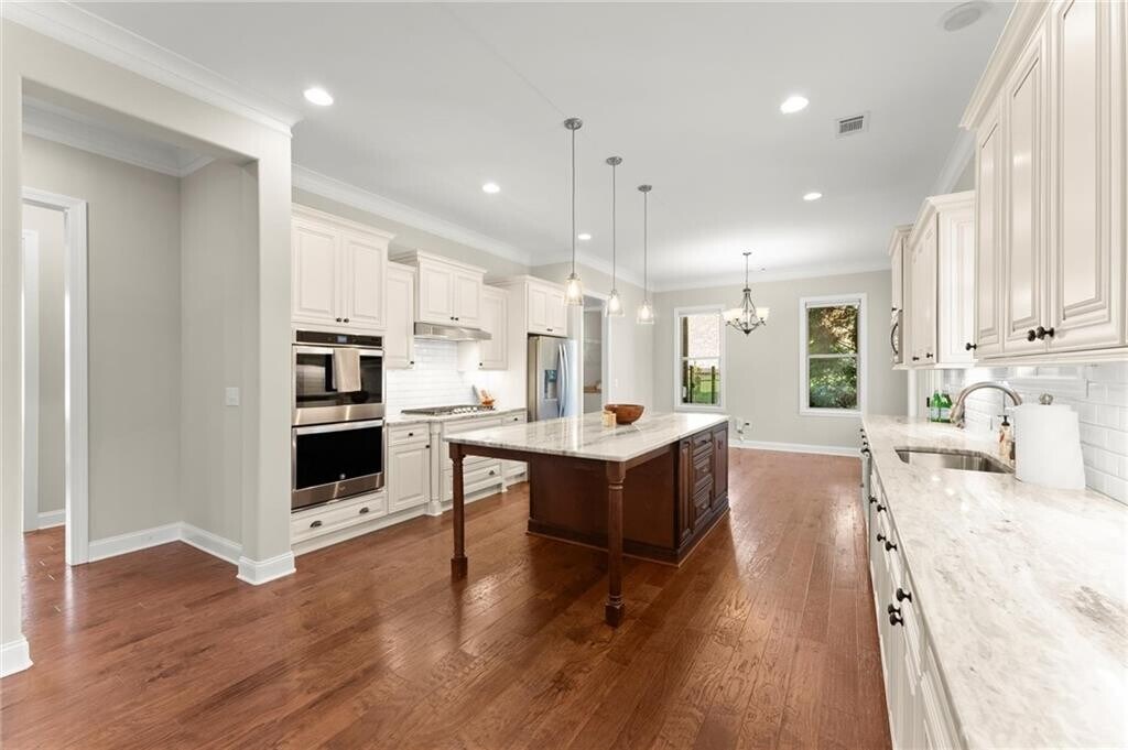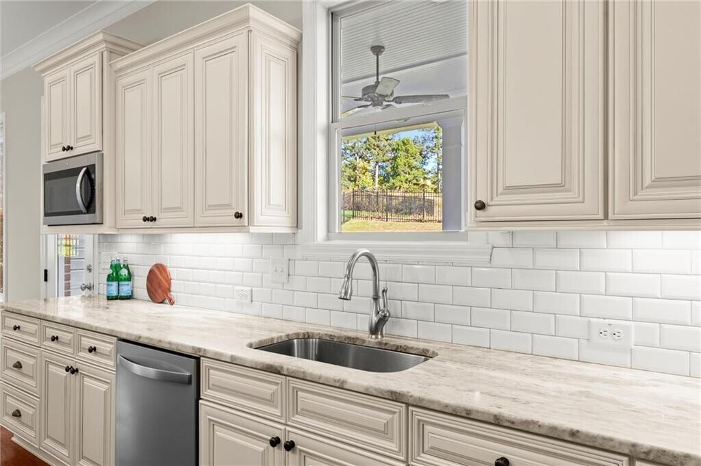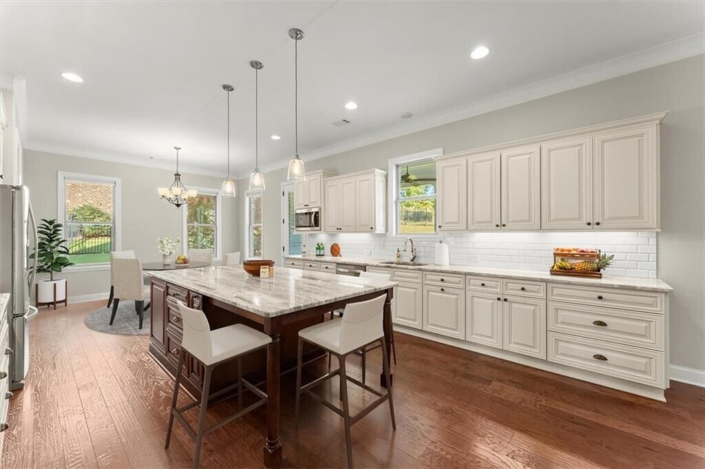 Welcome to this beautifully crafted four-sided brick home on nearly half an acre in The Overlook at Marietta Country Club. Built in 2018,this 6-bedroom,4.5-bath residence offers over 4,100 square feet of thoughtfully designed living space with a layout that blends comfort and functionality. A covered front porch opens to an inviting foyer and a bright living area with a cozy fireplace,where 10-foot ceilings and natural light create an open,welcoming feel. The space flows effortlessly into the kitchen and breakfast area—an ideal gathering place for both everyday living and entertaining. The kitchen showcases a large island,white soft-close cabinetry,granite countertops,and stainless steel appliances,including double ovens and a gas cooktop,with a walk-in pantry tucked conveniently nearby. A formal dining room,half bath,and laundry room are thoughtfully placed to maintain comfort and flow throughout the home. The owner’s suite completes the main level,offering a private escape with backyard views and lots of natural light. The owner’s bath features dual vanities,a soaking tub,and a separate shower leading into a walk-in closet designed for everyday ease. Upstairs are five spacious bedrooms and three full baths,offering flexibility for family,guests,or home office use. Each room enjoys natural light and generous closet space. Outdoors,a covered back porch overlooks the private backyard,ideal for relaxing or entertaining. The property extends beyond the current fence line,allowing for a larger usable yard if desired. The three-car garage provides generous space for vehicles,storage,and a golf cart,adding both convenience and versatility. Residents of The Overlook at Marietta Country Club enjoy an exceptional array of amenities,including a newly renovated clubhouse,Olympic-sized pool with a water slide and lifeguards,a separate kiddie pool,playground,five lighted tennis courts with pavilion,four lighted pickleball courts,and a 32-acre private lake. The community is uniquely connected to the 27-hole Marietta Country Club,with nine holes within The Overlook and 18 more accessible through a private golf cart tunnel. Ideally located just across from Mount Paran Christian School and close to top-rated public schools,shopping,dining,and Kennesaw Mountain trails,The Overlook offers a vibrant and welcoming lifestyle in one of Kennesaw’s most desirable communities. Some photos have been virtually staged.