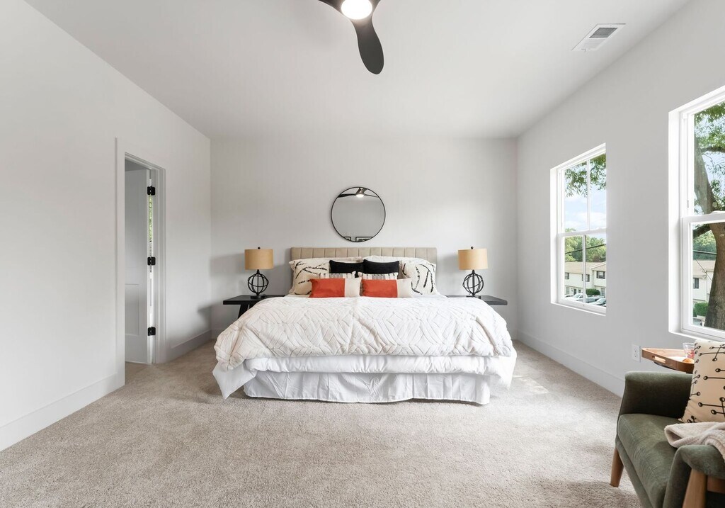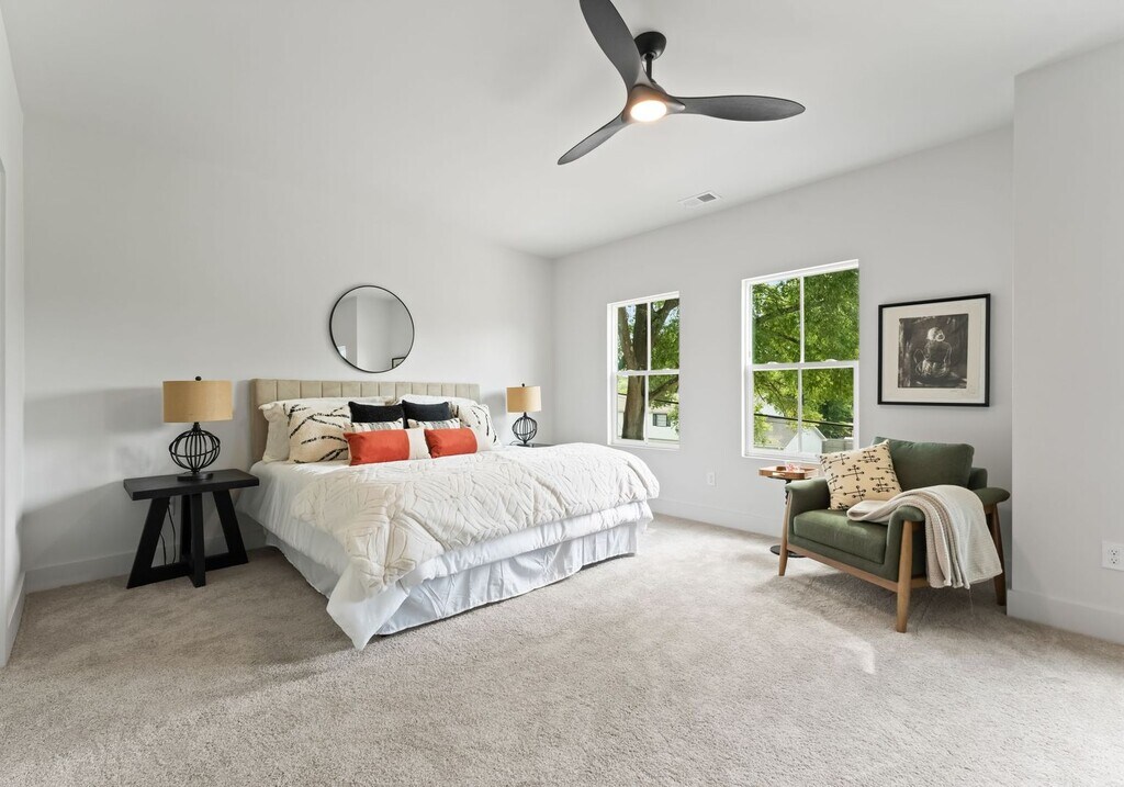 This spacious 4-bedroom, 2.5-bath home offers more than 2,100 sq. ft. of open, light-filled living. With soaring 10-foot ceilings, a fresh neutral palette, and thoughtful finishes throughout, it strikes the perfect balance of style and comfort. The modern kitchen showcases quartz countertops, a large island, and a seamless connection to the living room, where a cozy shiplap-accented fireplace creates an inviting focal point. Sliding glass doors lead to a private, fully fenced backyard, ideal for relaxing, entertaining, or pets. Upstairs, the primary suite features a spa like bath with dual vanities, a walk-in closet, and oversized windows that flood the room with natural light. Three additional bedrooms offer flexible space for family, guests, a home office, or a playroom. Located just minutes from Uptown, South End, and Charlotte Douglas International Airport, this home delivers the perfect blend of comfort, style, and exceptional convenience. To view this home today, please contact QC Properties to schedule a showing.