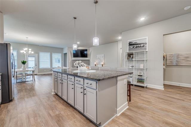 Coming Soon! Charming Craftsman-style 3-bedroom, 2.5-bath home located in the highly sought-after Pecan Square community of Northlake. This beautifully appointed home features luxury wood-look vinyl plank flooring, granite countertops, accent lighting throughout, walk-in closets and covered front and back porches. Designed with entertaining in mind, the open-concept floor plan offers a spacious living area with a gas fireplace that flows seamlessly into the dining area and kitchen, creating an ideal setup for entertaining. The gourmet kitchen includes granite countertops, shaker-style cabinetry, stainless steel appliances and a large center island with bar seating. Pendant and recessed lighting provide a clean, modern finish. The primary bedroom offers a relaxing spa-inspired ensuite boasting dual vanities, a garden tub, separate glass-enclosed shower with designer tile and a spacious walk-in closet. Enjoy exceptional community amenities including pools, parks, playgrounds, and a fitness center. With thoughtful finishes, modern touches and inviting indoor-outdoor living, this home is ready to impress. No smoking. Please review our Tenant Requirements at Ford Butler Property Management before submitting an online application. Owner has final approval. Tenants to verify measurements, schools and property condition.