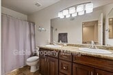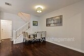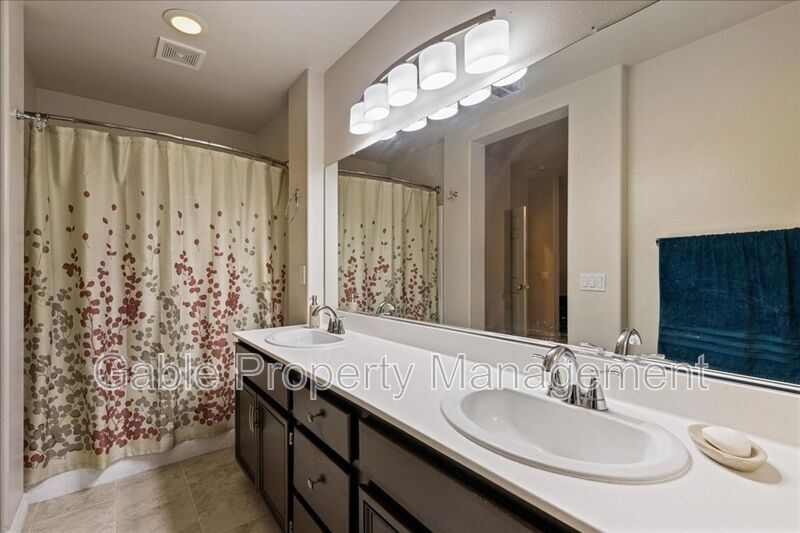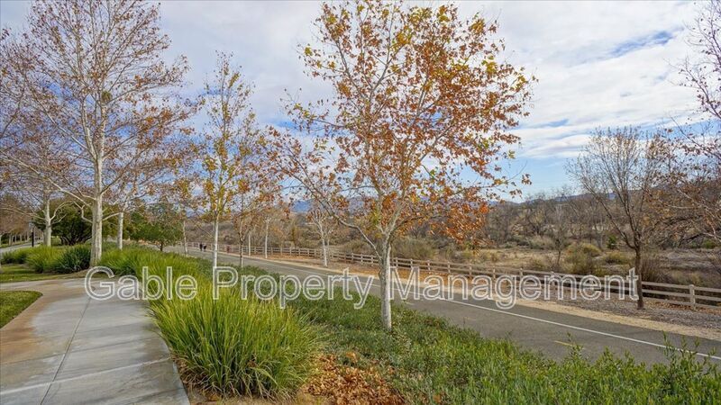Beautiful 3-bedroom, 3-bath home located in the desirable Bridgeport community in Valencia! This stunning property offers nearly 1,600 sq. ft. of living space and features a spacious living room with a ceiling fan, abundant natural light, custom paint, and wood floors. The upgraded kitchen opens to the living and dining areas and includes a breakfast bar, upgraded countertops, recessed lighting, custom cabinets, stainless steel appliances (microwave, oven, dishwasher, and refrigerator), a large sink with an upgraded faucet, subway tile backsplash, and tile flooring. The separate dining area features an upgraded light fixture. Downstairs includes a powder room with an upgraded vanity, light fixture, and mirror. Upstairs you’ll find three generously sized bedrooms with ceiling fans. The large primary bedroom includes an attached bathroom with dual sinks, upgraded vanity, shower/tub, and a walk-in closet. The hallway bathroom also features dual sinks, granite countertops, and a shower/tub. Laundry is conveniently located in the hallway. The home also includes a two-car garage. The community offers resort-style amenities including a pool, spa, lakeside walking paths, nearby parks, paseos, award-winning schools, shopping, restaurants, and the Valencia Mall. (Owner is offering a guarantee rental price if tenant signs a 2 year lease)