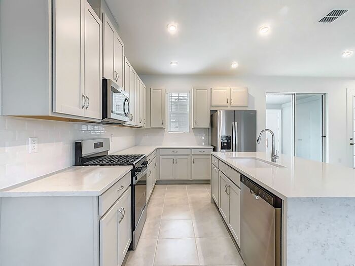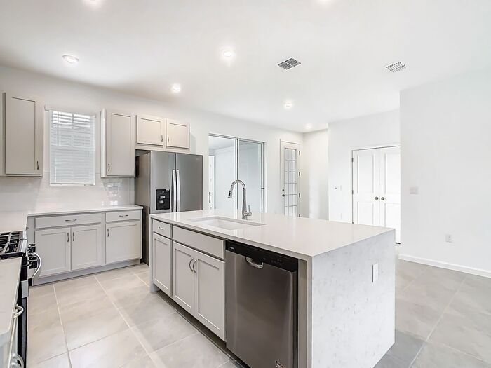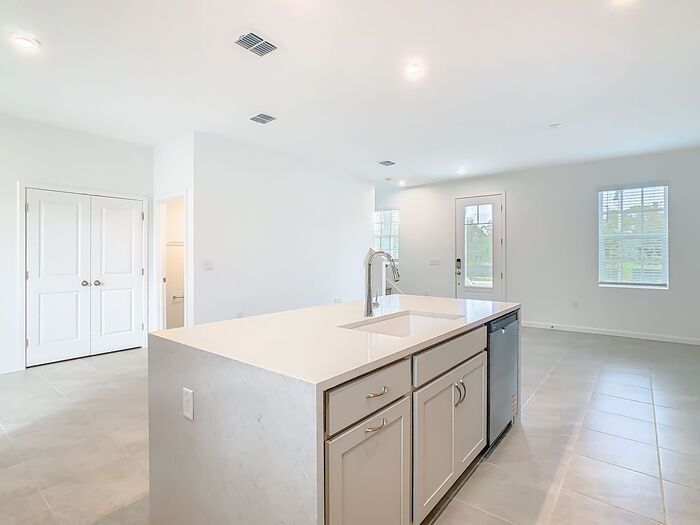 The Amelia is a two-story home featuring 3 bedrooms, 2.5 bathrooms, 1,652 square feet, and a detached two-car garage. Upon entering, you’re welcomed by a warm and inviting foyer that opens to a spacious kitchen, great room, and cozy breakfast nook in an open-concept layout. The kitchen features a spacious island with a breakfast bar for casual dining and a gas service for the range or cooktop. Upstairs, the owner’s suite offers dual walk-in closets and a dual-sink vanity, while two additional bedrooms share a convenient Jack-and-Jill bathroom. The Amelia also includes a large lanai, partially covered for outdoor enjoyment. This home has been upgraded with 42" solid wood kitchen cabinets, porcelain tile floors throughout all walking and bedroom areas downstairs and upstairs, additional cabinetry in the laundry room, and designer stair rails with upgraded luxury laminated planks for the stair steps. This home is brand new! Be the first one to enjoy this beutiful home and all the amenities that the Celebration community has to offer. Contact us to schedule a showing.