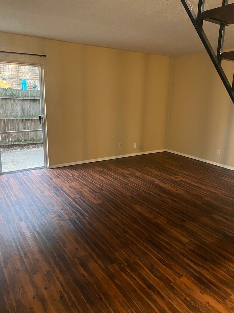 Two story apartment, living and kitchen downstairs, bedroom and bath upstairs, fresh paint, new carpet in the bedroom, small fenced patio. $50.00 water fee.