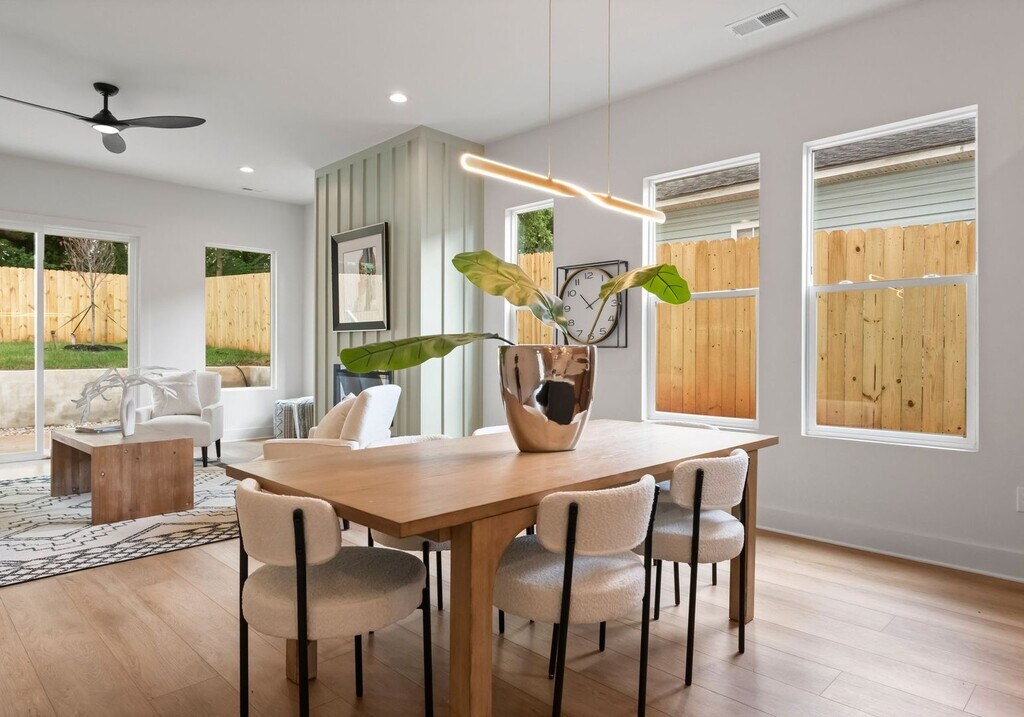 This spacious 4-bedroom, 2.5-bath home offers more than 2,100 sq. ft. of open, light-filled living. With soaring 10-foot ceilings, a fresh neutral palette, and thoughtful finishes throughout, it strikes the perfect balance of style and comfort. The modern kitchen showcases quartz countertops, a large island, and a seamless connection to the living room, where a cozy shiplap-accented fireplace creates an inviting focal point. Sliding glass doors lead to a private, fully fenced backyard, ideal for relaxing, entertaining, or pets. Upstairs, the primary suite features a spa like bath with dual vanities, a walk in closet, and oversized windows that flood the room with natural light. Three additional bedrooms offer flexible space for family, guests, a home office, or a playroom. Located just minutes from Uptown, South End, and Charlotte Douglas International Airport, this home delivers the perfect blend of comfort, style, and exceptional convenience. To view this home today, please contact QC Properties to schedule a showing.
