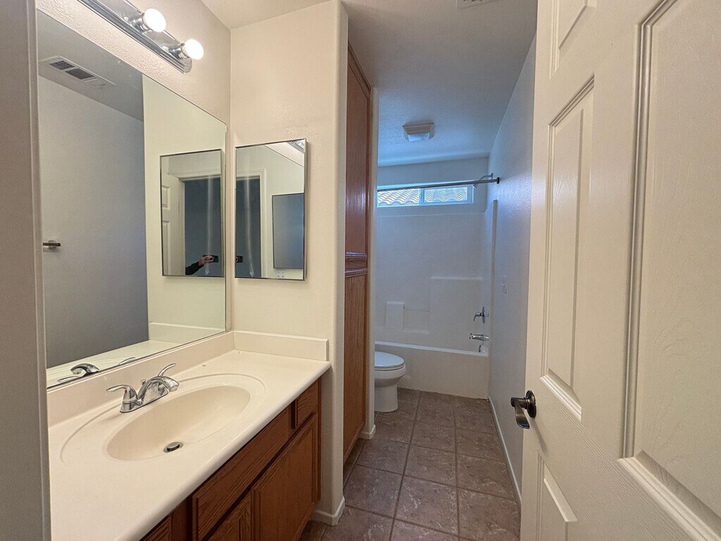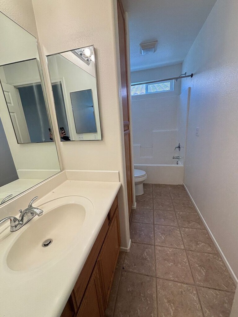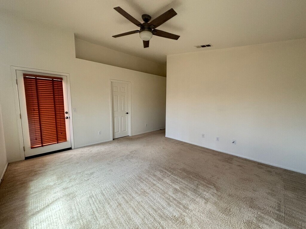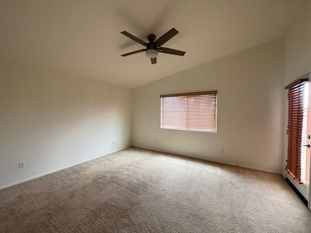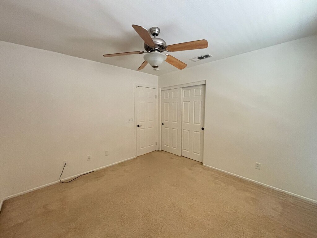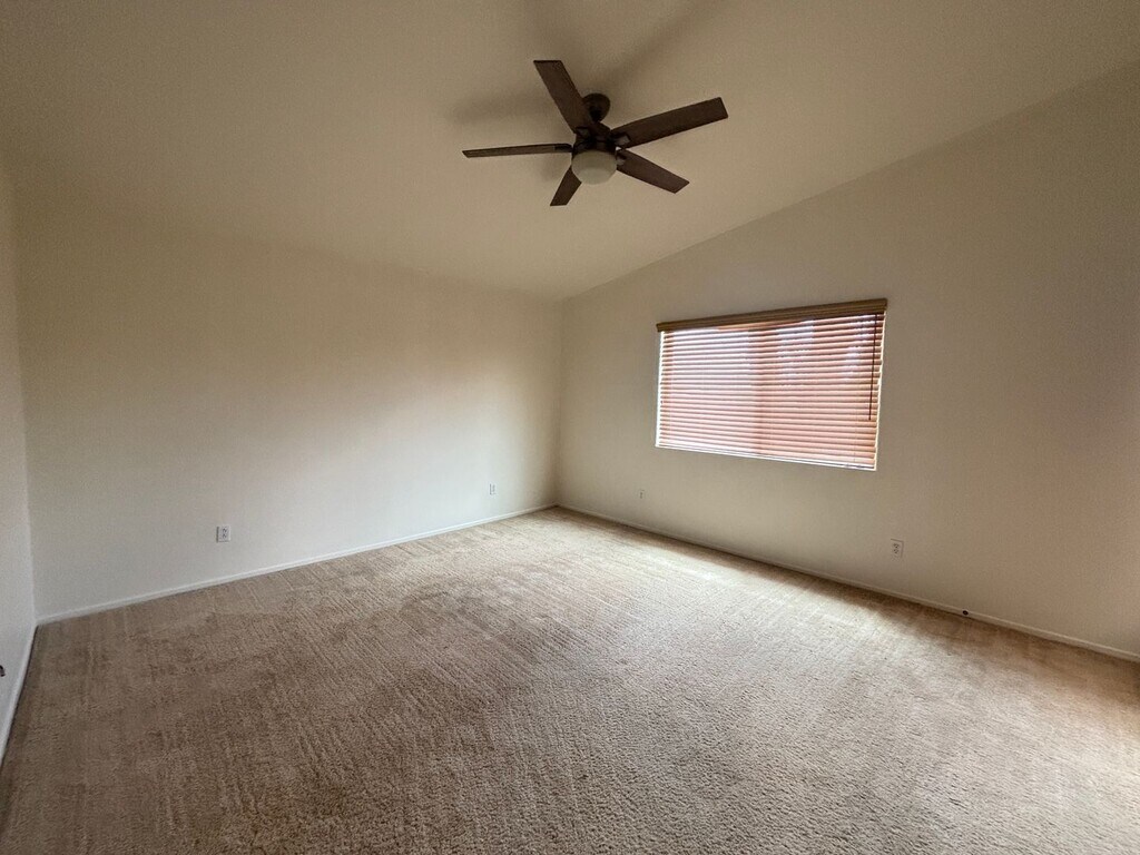1 story - 3 bedrooms - 2 bathrooms - stove - microwave - reglazed kitchen sink - washer dryer hook ups in hallway - new interior paint - window coverings - 2 car attached garage/NO direct access to the house - landscape front and back - view from the living room and patio off the living room - ceiling fans throughout - community pool and spa - lease term one (1) year - FICO credit score required to rent this property is 700 with good credit - Rental insurance required - lease term one (1) year - No Pets