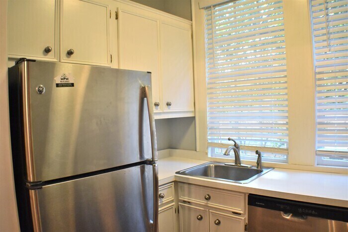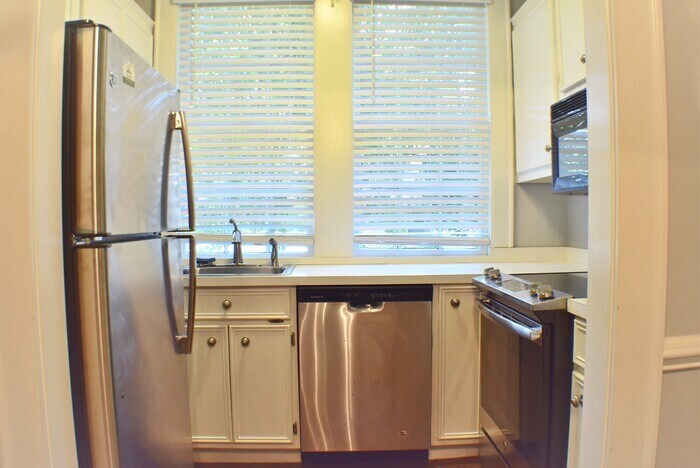 Charming two bedroom, one bathroom unit located right where you want to be with an easy walk to Five Points and USC. Through the front door you will enter into the living which features hardwood floors and a cozy fireplace. Archways lead into the dining room. The efficiency kitchen offers full size appliances. Both bedrooms are a great size and showcase new carpeting. The shared bathroom offers a full vanity with cabinet storage to make sharing a breeze. The laundry closet is in the hallway; central to both bedrooms. On site parking is another great amenity! Call with questions. See it for yourself today! This property allows self guided viewing without an appointment. Contact for details.