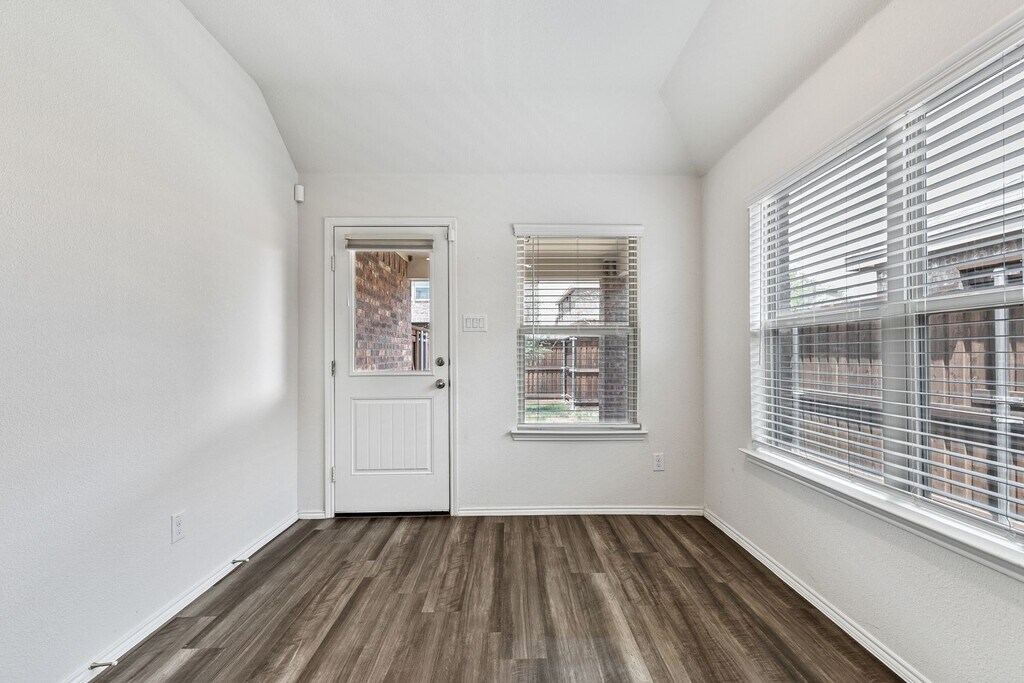 Beautiful 4 Bdrm 2 Bath Home in Aubrey Texas. This home Boasts a Large Kitchen with many Amenities. Kitchen has Granite Countertops, SS Microwave, SS Gas Range, SS Dishwasher, Disposal, Island, and Nice Pantry. The Breakfast Nook overlooks the Backyard and 9x9 Covered Patio. Living area, Entry, Utility Rm, Kitchen, & Nook all Vinyl Plank Flooring. Bedrooms are all Carpet. Large Master Bedroom comes with Garden Tub, Separate Shower, 2 Sinks, and Big Walk in Closet. The home is close to All Schools. Easy access to Hwy 380 and Shopping. Monthly Mowing and Edging Included in Lease.