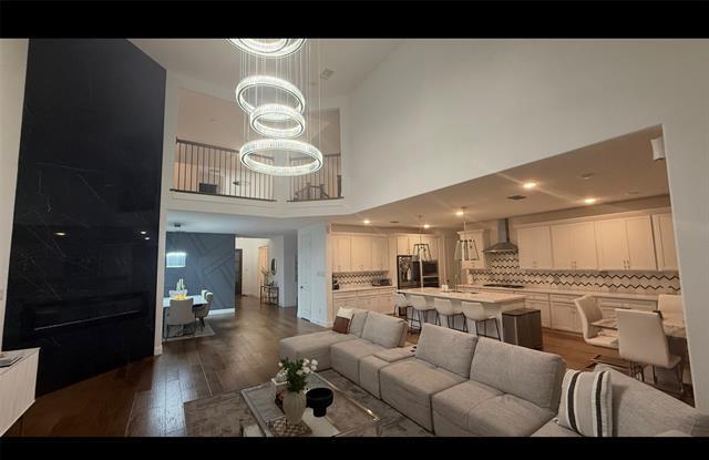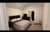 If you've step foot inside our Hollyhock model, then you know there is everything to love about the spacious Dickinson floorplan. This exquisite 2-story home delivers 5 bedrooms, 4 full bathrooms, 2 half bathrooms, a productive home office, an open-concept layout, tall ceilings, dazzling window views, and a coveted media room upstairs. Everyone will have a space to call his or her own in this 4,059 square foot dream home. Timeless brick paired with light stone accents and a beautifully manicured lawn makes for a breathtaking first impression. Step through the 6-lite, mahogany-stained front door and into the foyer. If you're looking for a floorplan that accommodates 2 bedrooms on the 1st floor, then this is the layout for you. A bedroom with its own bathroom and walk-in closet is nestled right off the entrance. Across the hall discover a generously sized study. Sunkissed wood flooring with incredible variation and grain pattern flows throughout the common living spaces. Wander from the foyer, just past the formal dining space and into the heart of the home, where you'll find the breakfast nook, gourmet kitchen, and the family room accentuated by a corner fireplace. Loads of windows flood the gathering space with natural light, making it the perfect place for entertaining or simply spending time with the family. The stylish and well-equipped kitchen boasts the following features: 42 inch white painted cabinetry. Home includes the Fridge in kitchen, washer and dryer, small fridge in laundry room, gas grill and swing in backyard, electric charger cable and water softener. One queen bed and breakfast table with chairs. Projector and screen in media room.