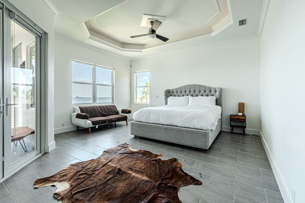 Experience the grandeur of waterfront living in this majestic six-bedroom property with breathtaking views of the Caloosahatchee River. This luxurious home boasts soaring ceilings, a gourmet kitchen, and a private backyard oasis complete with an outdoor swimming pool, furnished patio, and BBQ area. With 5.5 bathrooms and ample space, this residence offers a perfect blend of luxury and comfort, making you feel at home. Welcome to your waterfront paradise, offering nearly 5500 sq ft of living space with spectacular river views. This home is designed for both short-term and medium-term stays, catering to corporate housing needs and providing a welcoming 'home away from home' experience. The custom-designed kitchen features striking granite countertops, high-end appliances, and a breakfast bar, while the dining room offers a top-notch indoor/outdoor dining experience with sliding patio doors. The living room, with its high ceilings, custom staircase, and two-way fireplace, provides a stylish and inviting atmosphere. The property offers the option to heat the pool and spa for an additional fee, with costs starting at $150 for initial heating and $60 per day to maintain the pool temperature. Alternatively, the spa can be heated for $120 initially and $40 per day. Pets are welcome with a non-refundable fee of $150 per pet, with a maximum of two pets per stay. An additional nightly rate applies for more than six guests, with a $29 fee per extra guest. Located in Cape Coral, this property offers the best of Florida living with a unique blend of natural beauty, recreational activities, and family-friendly attractions. Enjoy the tropical climate and year-round warm temperatures, with nearby attractions such as Sun Splash Family Waterpark, Cape Coral Yacht Club Community Park, and Four Mile Cove Ecological Preserve just a short drive away. The Wicked Dolphin Rum Distillery is also nearby for those interested in local spirits. Smoking of any type is not allowed, with violations subject to a $450 fine plus the cost to clean, deodorize, and repair damages. Check-in is at 4pm and checkout is at 10am. No parties or events are allowed, and pets should be discussed in advance, with pet cleaning fees applied. The property includes noise level monitoring to comply with local noise ordinances and prevent unauthorized parties. Rest assured, your privacy is respected as the device only measures decibels and does not record sound data. The property is equipped with high-speed Wi-Fi, ensuring a seamless remote work-friendly environment for guests who need to stay connected during their stay. Registration Number: RNT- [SI]