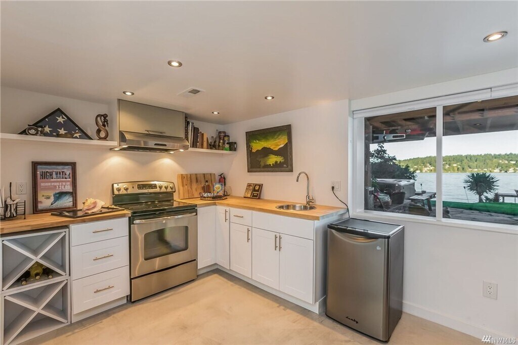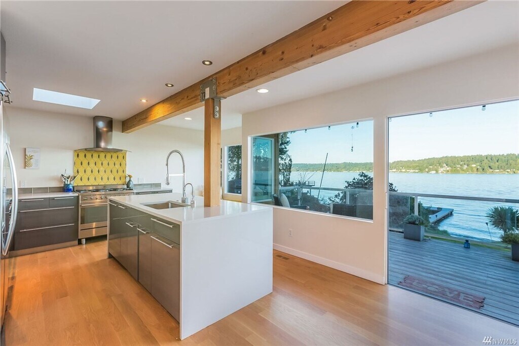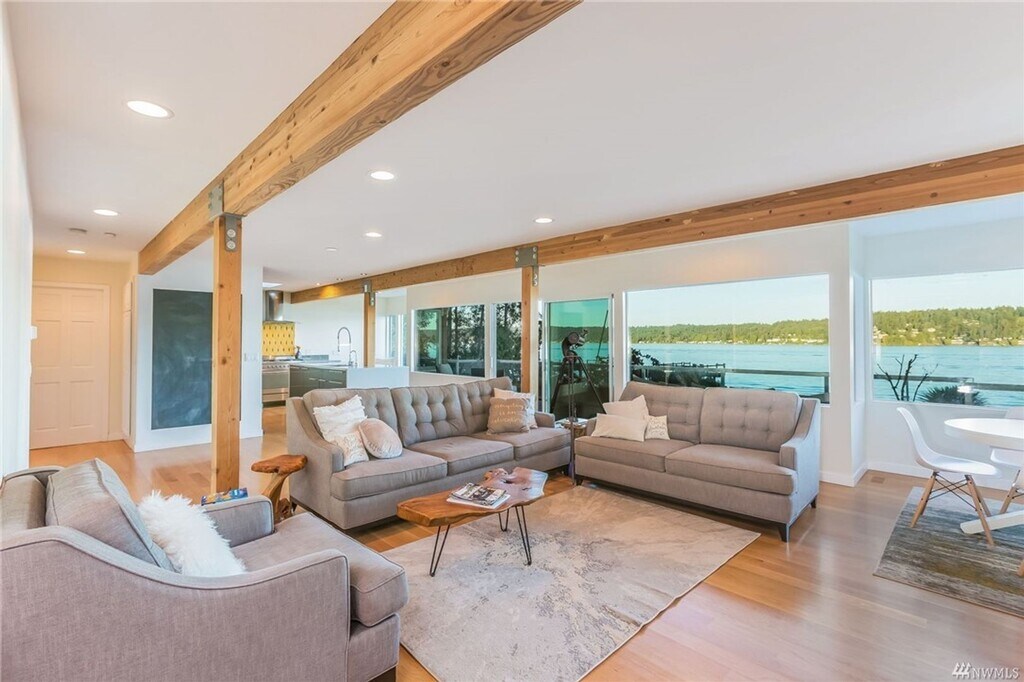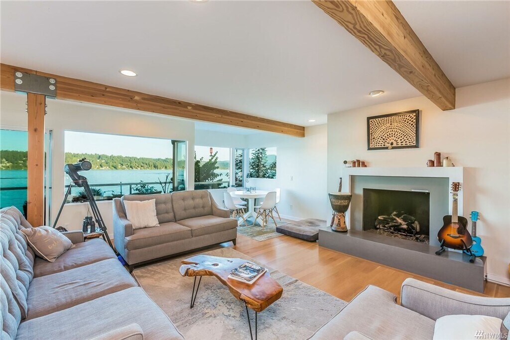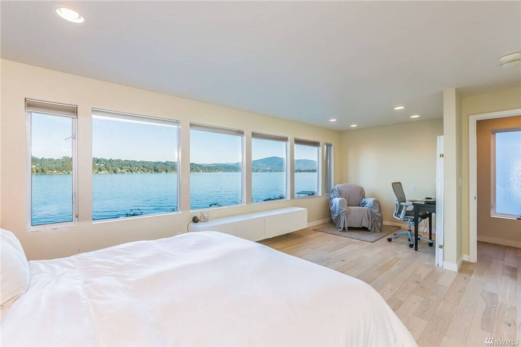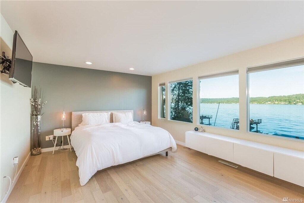 Mid-Century 4 Bedroom/3 Baths 3,080 square foot View Home features 50 foot of sandy, low bank beach & newer deck with boat lift. Updated interiors with beautiful hardwood flooring throughout. Remodeled kitchen with stainless appliances and open floor plan is perfect for entertaining. Large living spaces flow seamlessly with floor-to-ceiling windows and sliding doors open to the expansive 180-degree view deck. Cozy gas fireplace. Master bedroom suite + 2 additional bedrooms are located on the upper level. Main level has fourth bedroom and full bath. Lower level with separate entrance features MIL studio unit that can be used as office or guest quarters with second kitchen, three quarter bath. Gas heat & heat pump for cooling. Lower-level fireplace not operational. Large, fenced yard and space for vegetable garden. Patio features beautiful Olympic Hot Tub (tenants responsible for maintenance). Several parking spaces suitable for large gatherings + additional RV & boat parking. Private 15,384 square foot lot from main road to water. Terms: 1st & 1 month security deposit. Tenant Pays for all utilitties. Tenant pays for Monthyl Yard Service 21-22 Months Lease Minimum. Subsequent Renewal possible. Available November 1. NO SMOKING/1 CAT OR 1 SMALL DOG CASE BY CASE WITH ADDITIONAL PET FEE/DEPOSIT. NO THIRD PARTY SCREENING REPORT ACCEPTED INCLUDING ZILLOW. No applications are accepted prior to viewing the property. Qualification requirements are posted with listing pictures. Please review before requesting a showing appointment. Managed by CHEL NW REALTY