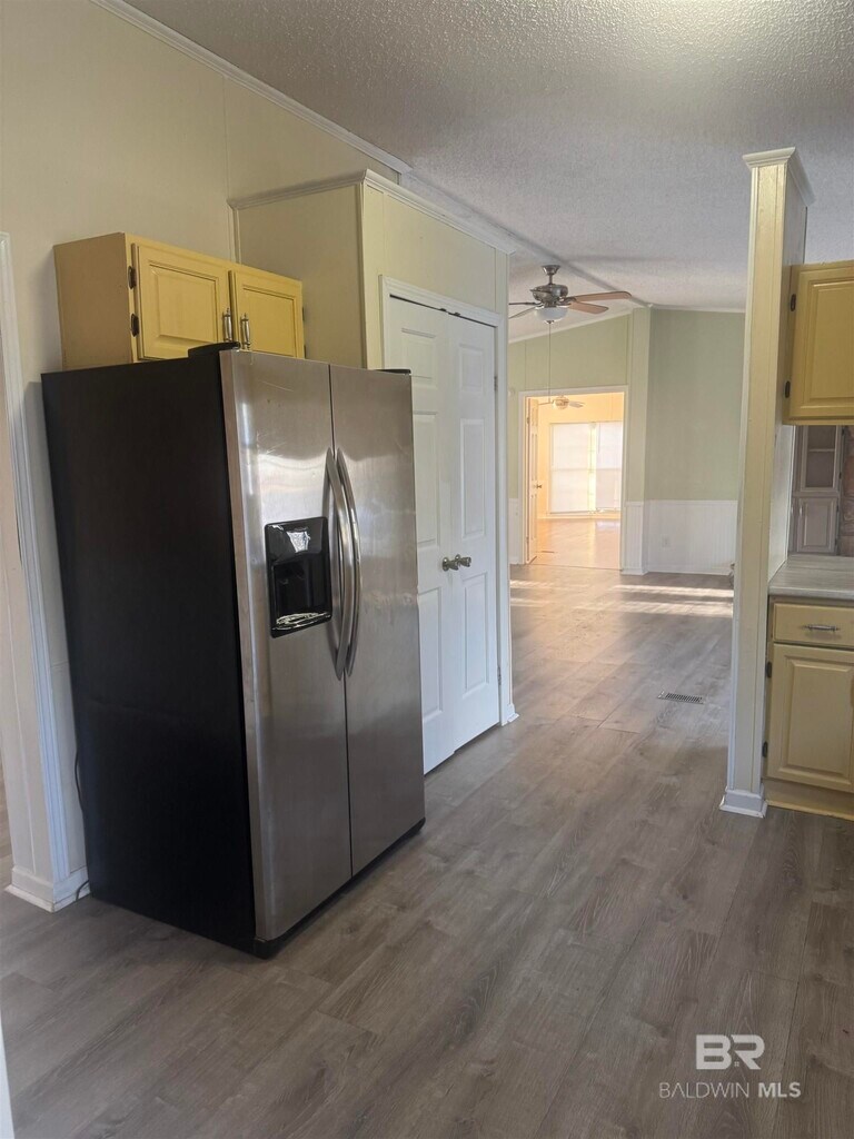Beautiful private .94 acre with wooded setting totally fenced and just minutes to Baldwin Beach Express. 2240' Doublewide Mobile Home-4/2 1/2 split floor plan offering 18X18 Primary Bedroom with Bay Window and walk-in closet. 18X26 Living/Den Combo with corner fireplace and built in bookcases on each side. Nice size Dining Room off Den/Living Room combo. Large kitchen with sit to bar,flat surface stove,Stainless steel Side by Side refrigerator with icemaker and huge pantry. 7'3"X9 utility with washer and dryer hookups. Half bath off utility. This property has a beautiful sloped wooded setting. Paved drive,fenced in yard,workshop with 14X25 patio with power and water. Microwave nor Dishwasher available in Kitchen. If privacy,plenty of room,convenience to Baldwin Beach Express,Interstate 10 or Hwy 90 to Pensacola is a good fit then this is the one for you. Credit application to include background checks. Verification of prior Rental History,verification income (last two pay stubs) required. To pre-qualify and preview property must have 3X rent gross combined income of $5100 month.,credit score 600,verifiable rental history,and NO PETS ALLOWED INSIDE OR OUTSIDE. NO SMOKING OF ANY KIND INSIDE. Due to insurance requirements no pools,trampolines,or four Wheelers allowed. All correspondence thru text or email please...Application process thru Zillow and there is a $35 application fee for anyone over 18 leasing property. Please send all correspondence thru text or email. Security Deposit $1800 and first month's rent $1800