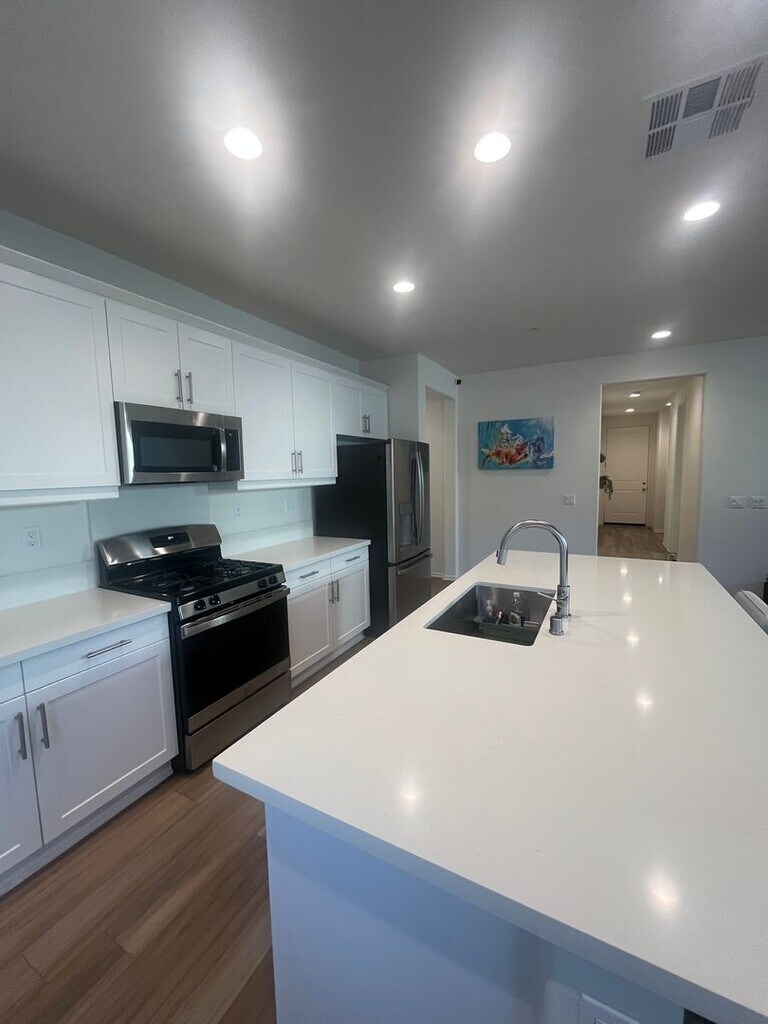 Welcome home to this beautifully maintained **3-bedroom, 2-bath single-level condo/house for rent** in the highly desirable **gated Terramor Community in Corona**. Located on a quiet street, this home offers peaceful living and modern comforts in a resort-style setting. Inside, you’ll find an inviting open layout with a bright living room, dedicated dining area, and a stylish kitchen featuring marble countertops, upgraded cabinetry, stainless-steel appliances, a spacious island with bar seating, and direct access to a low-maintenance private backyard—perfect for relaxing or entertaining. The primary suite includes a large walk-in closet, dual-sink vanity, and a glass-enclosed walk-in shower. Two additional bedrooms sit on the opposite end of the home for added privacy, along with a full guest bathroom. Other conveniences include an indoor laundry room, luxury vinyl plank flooring, recessed lighting throughout, custom window treatments, and an attached two-car finished garage. Step outside your front door and enjoy all the amenities this award-winning community offers: a resort-style pool and spa, toddler splash area, indoor/outdoor lounges, dog parks, guest parking, and access to scenic walking and hiking trails. Shopping, dining, and entertainment at Dos Lagos are just minutes away, along with easy freeway access. -Furniture may be included with extra fee. This home offers comfort, convenience, and a lifestyle you’ll love—don’t miss it!